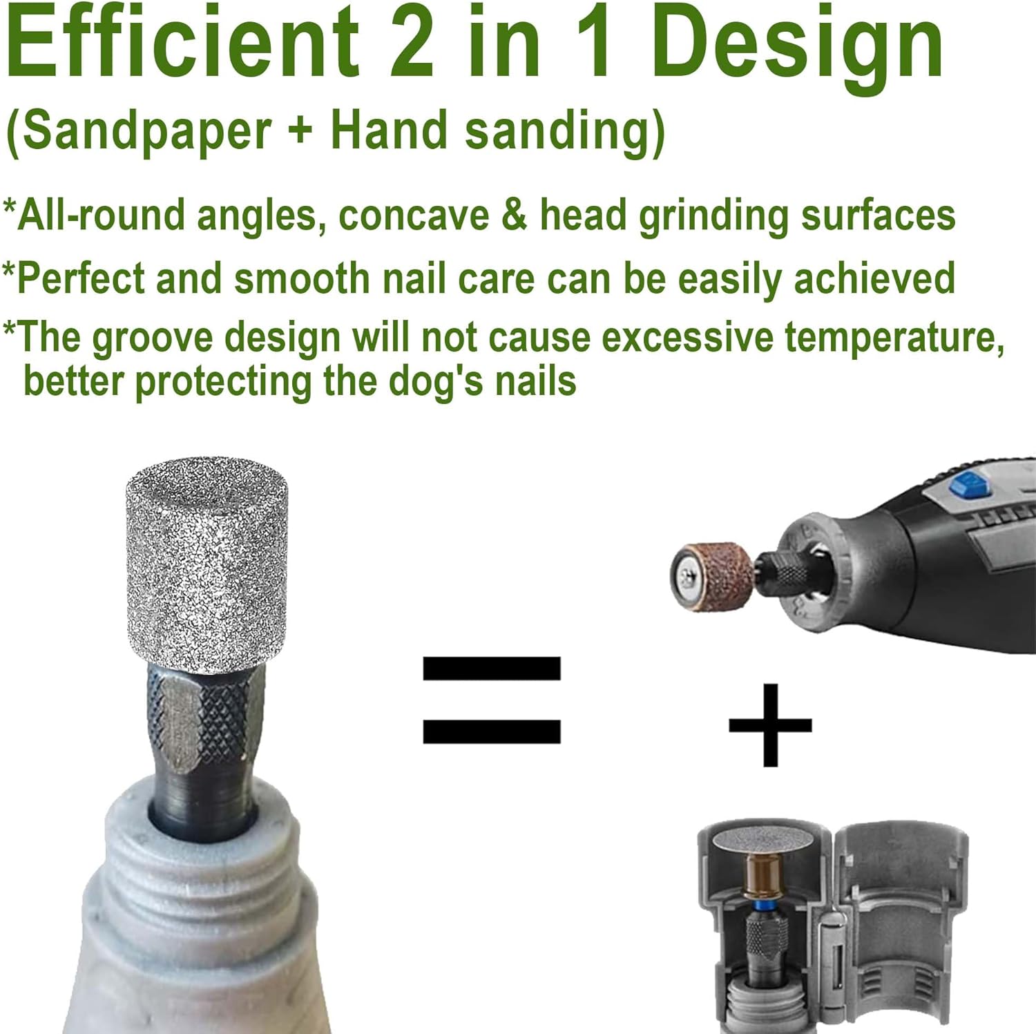 - The diamond pet nail grinder wheel is not easy to heat up. It is suitable for most pet nail grinder tools. The 1/8" handle can be easily used with various rotating nail grinding tools. Suitable for all kinds of dogs.