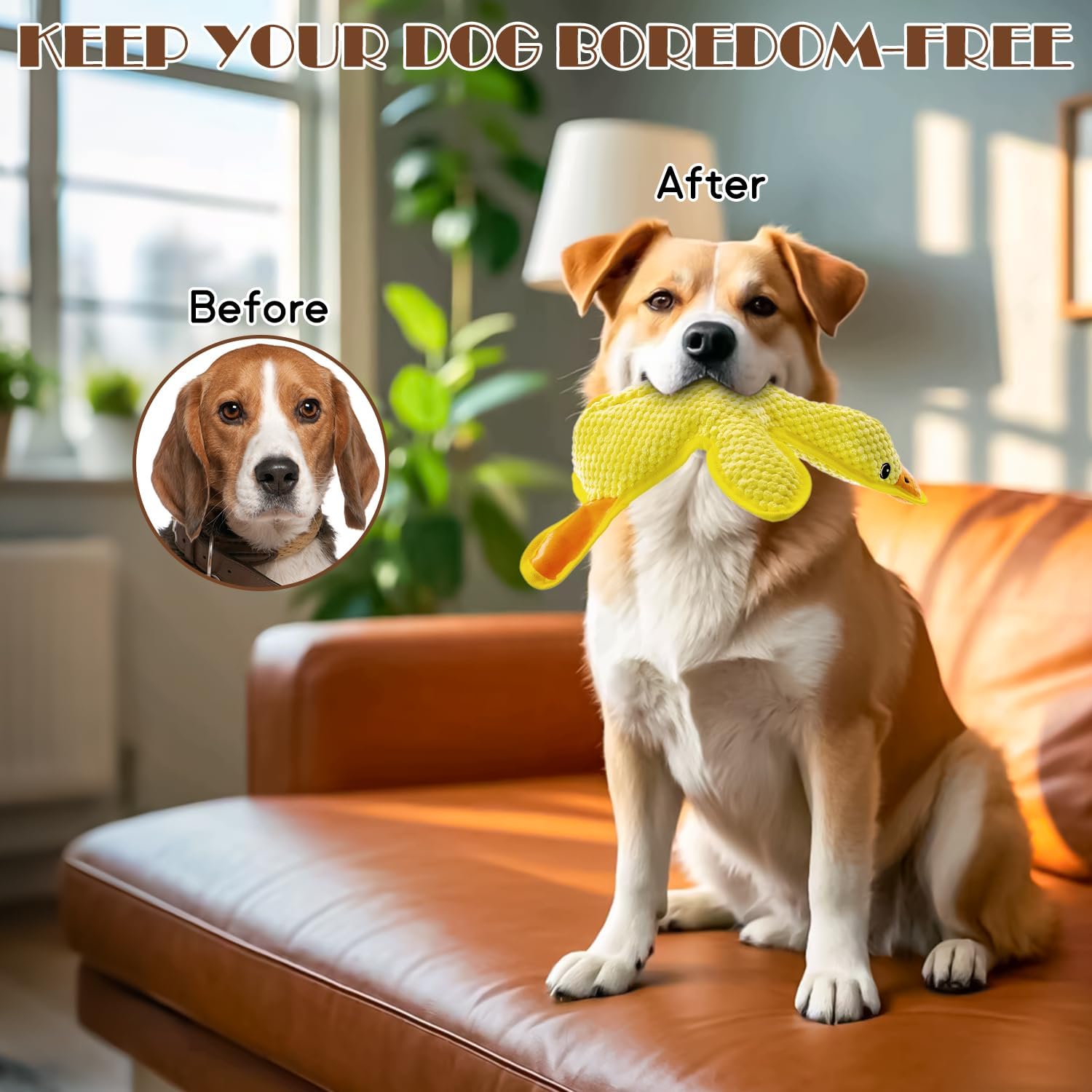 No Stuffing Dog Squeak Toys- Chew Toys for Small Medium Large Breed- Durable Puppy Teething Interactive to Keep Them Busy- Best Birthday Gift(Yellow Duck)