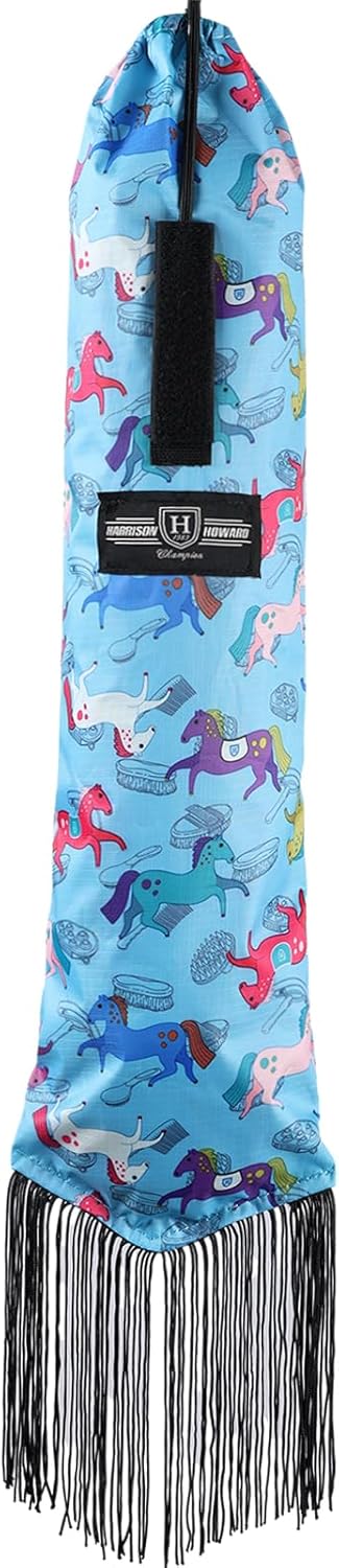 Harrison Howard Smooth Lightweight Adjustable Fastener Nylon Horse Tail Bag with Fringe