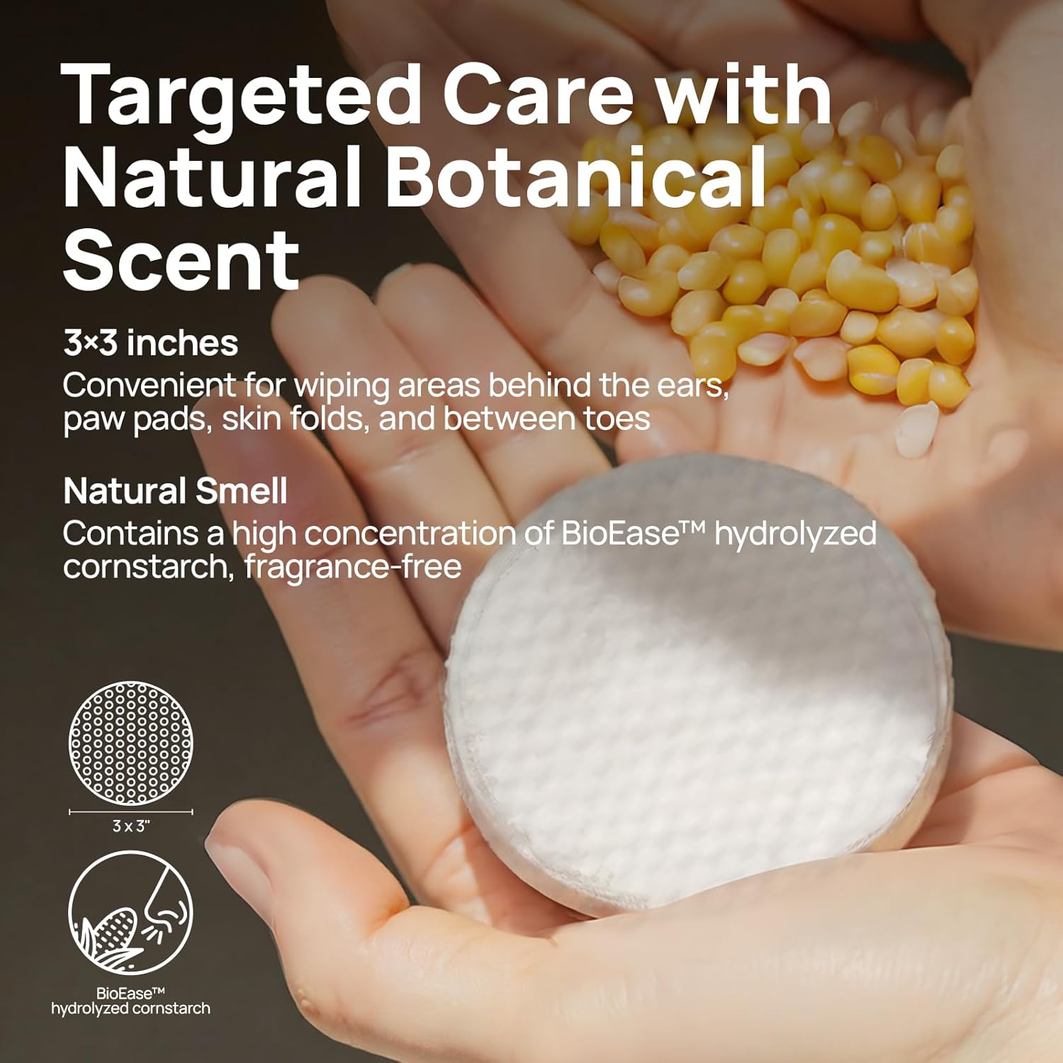 • More Powerful Formula for Root-Level Itch Relief: Itch relief for dogs contain a high concentration of BioEase hydrolyzed cornstarch, which penetrates deeply and offers natural anti-allergic properties for fast and long-lasting itch relief. It effectively inhibits the release of itch factors, addressing itching at its source. Due to its high concentration and absence of artificial fragrances, the wipes have a strong natural plant scent — a true sign of the potency of natural ingredients