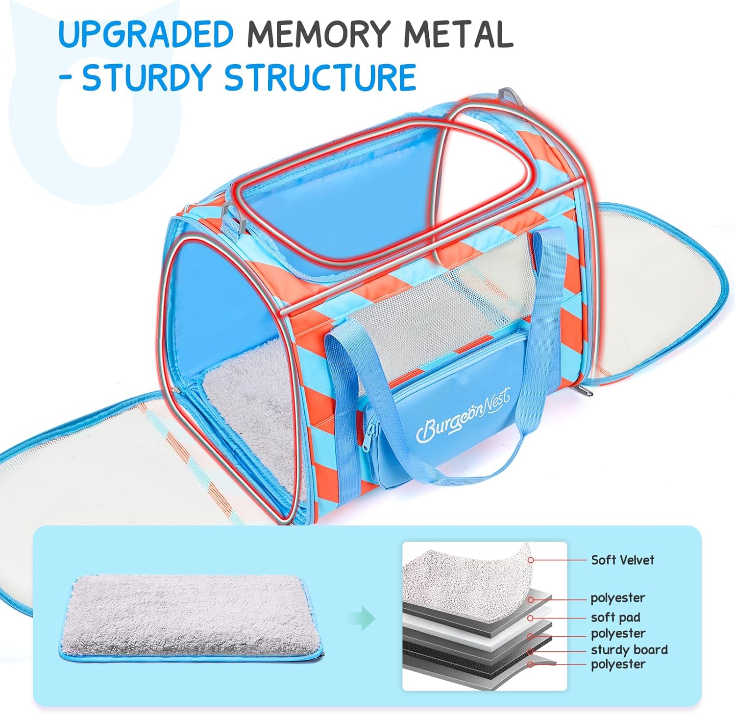 - Cat Carrier Soft: BurgeonNest Pet carrier measures 17.7"L x 12"W x 12.5"H, suitable for pets up to 20 lbs; ideal for travel/vacation/leisure/hiking/car/outdoor activities etc. The pet carrier for cat ensures ample space for your pet to move while maintaining portability.