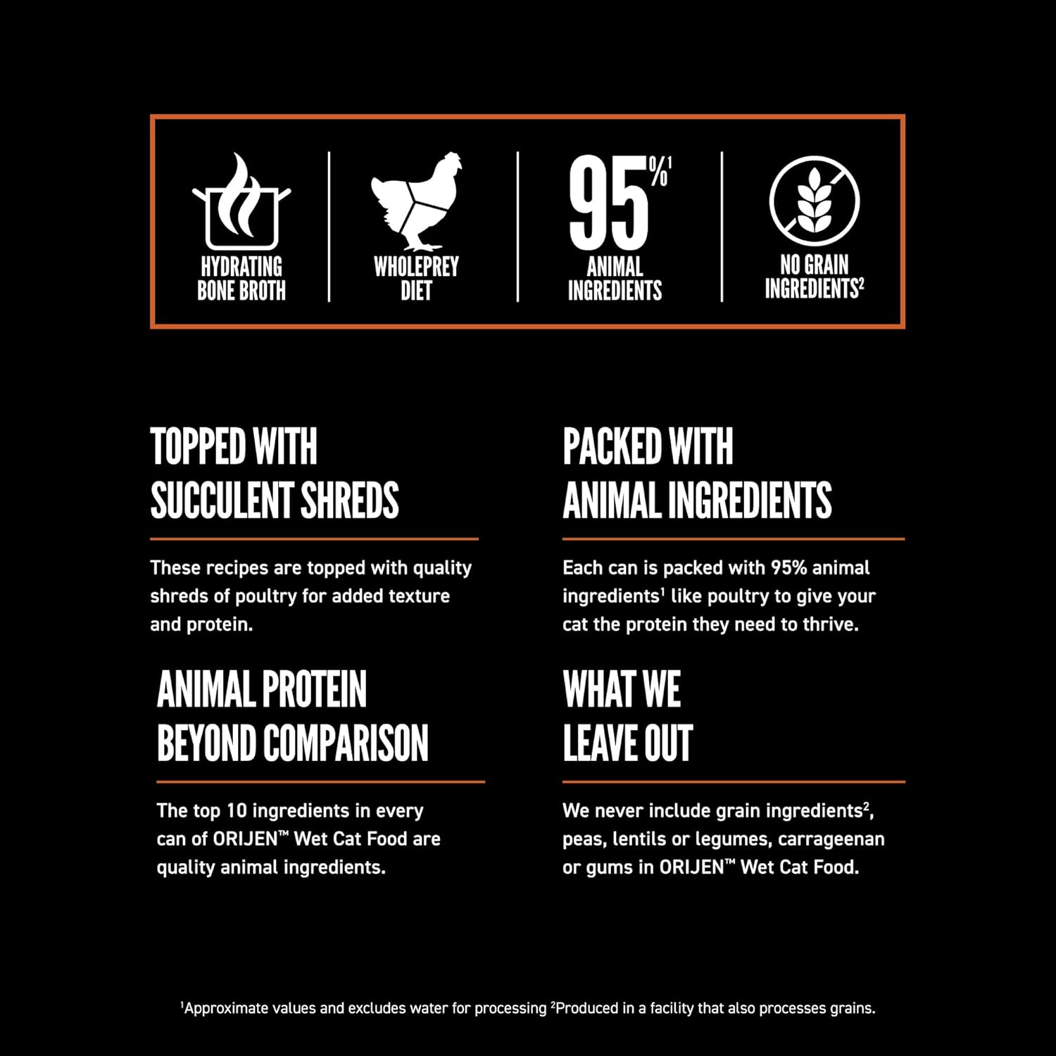 - This cat food recipe contains no grain ingredients**, potato, carrageenan, pea, lentil or legume ingredients.
