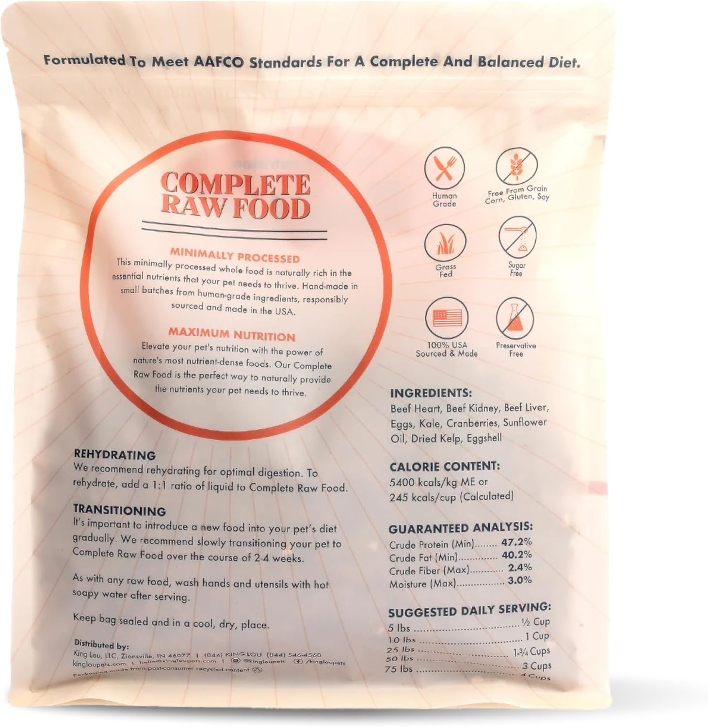 King Lou Pets - Human Grade Raw Food for Dogs and Cats - Complete Meal for Pets - Freeze Dried Beef Recipe - 14oz