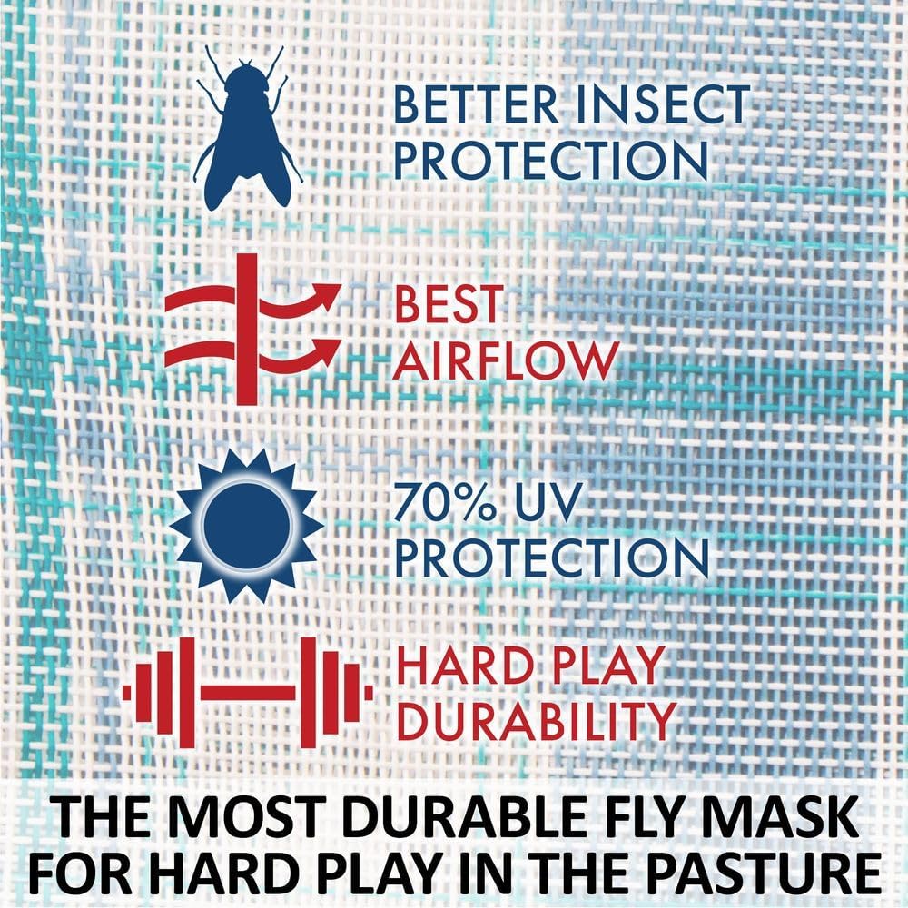 - Color Blue Plaid | Size Cob - DURABLE 1000D MESH - Crafted from heavy-duty vinyl-coated Dura-Mesh, this fly mask withstands daily turnout and hard play while shielding your horse from biting insects like deer flies, greenheads, and horse flies.