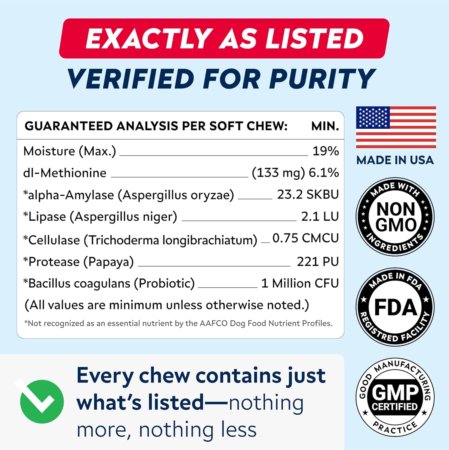 • Tasty Treats: Forget about tablets, pills, spray, or neutralizing rocks & stones, our dog urine neutralizer for lawn is the perfect soft edible treat for all dogs: from small puppy to large female doggy, everyone loves these biscuits-like treats.