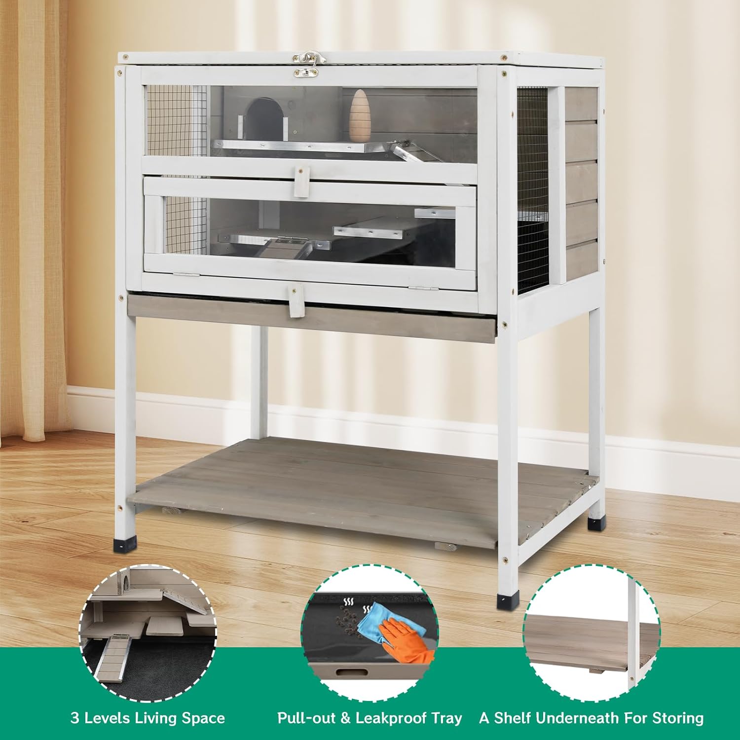 PetsCosset Guinea Pig Cages Hamster Cage Indoor with Stand Storage Wooden Outdoor Small Animals Habitat with Hideout House Pull Out Tray