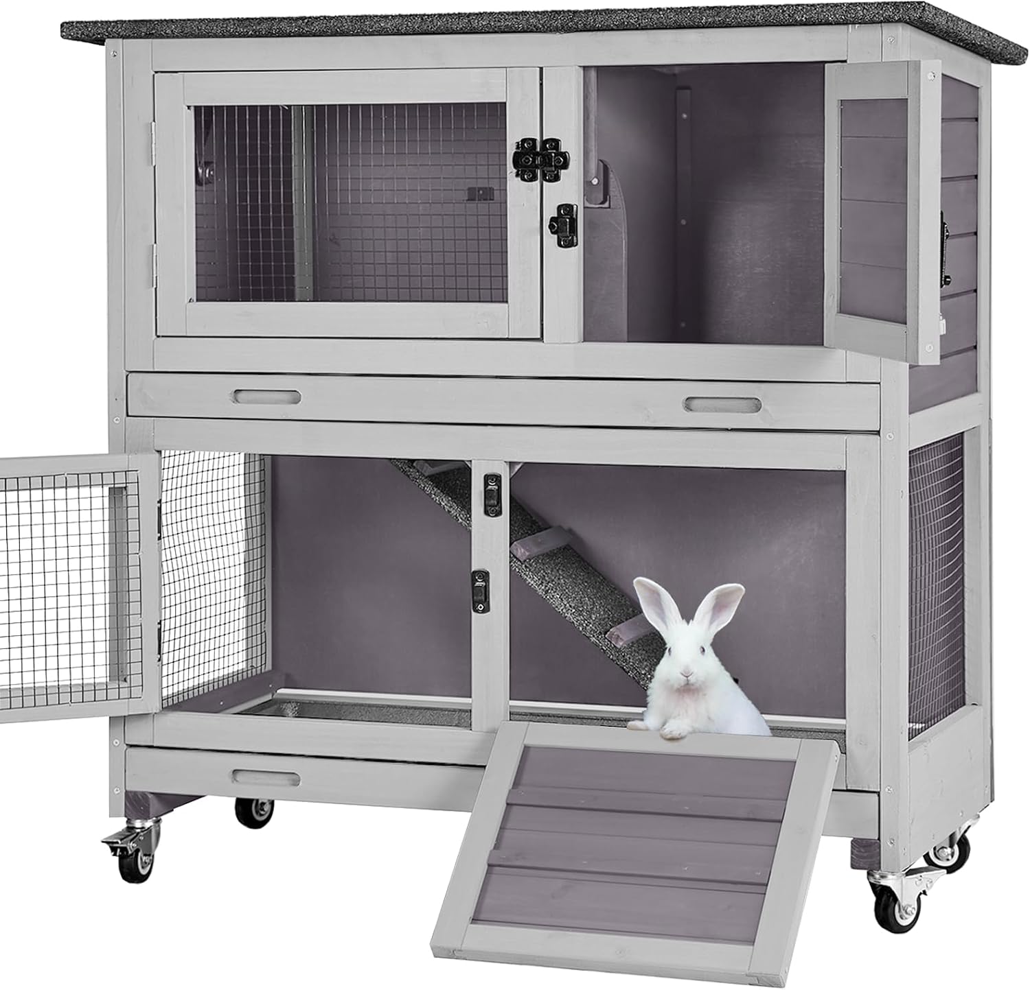 - Rabbit cage with TWO DEEPER pull out trays that wonβt leak off and easy-to-clean.