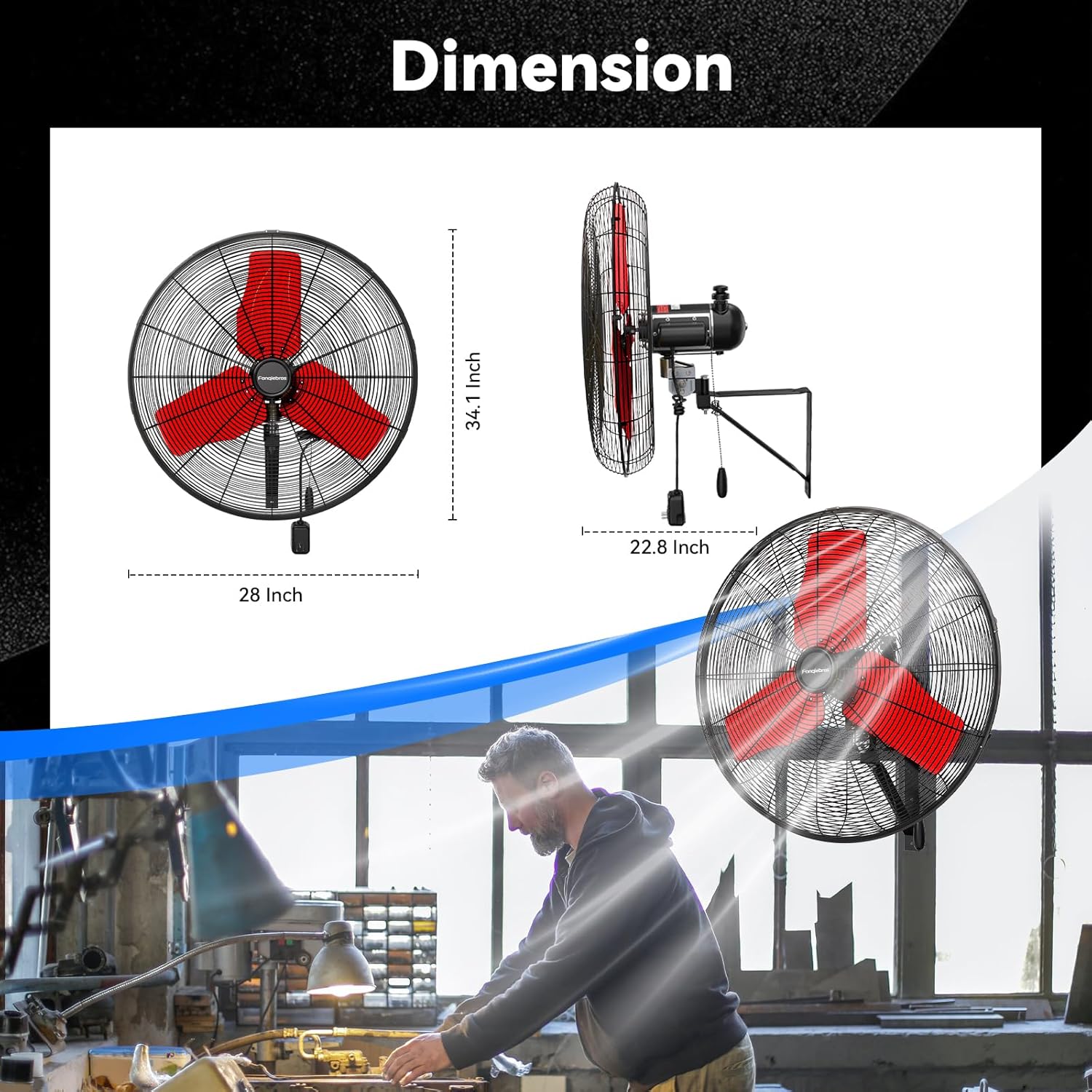 - ššØš°-ššØš¢š¬š ššš¬š¢š š§ - The heavy-duty wall fan operates at a high speed of 9500 CFM with a noise level of only 65dB, which is lower than the industry standard, creating a quieter gathering or working environment