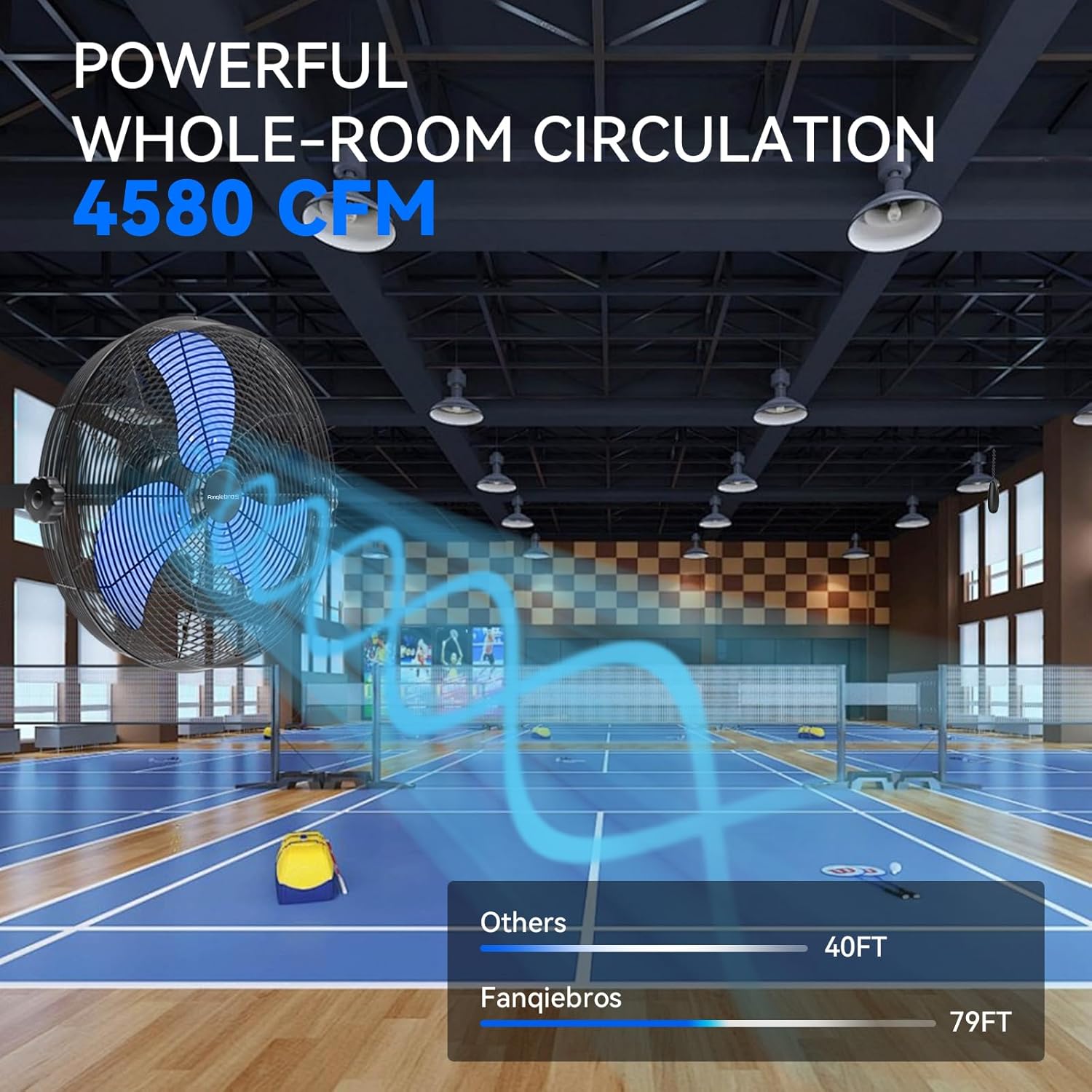 - ššØš°-ššØš¢š¬š ššš¬š¢š š§ - The heavy-duty wall fan operates at a high speed of 4580 CFM with a noise level of only 60dB, which is lower than the industry standard, creating a quieter gathering or working environment