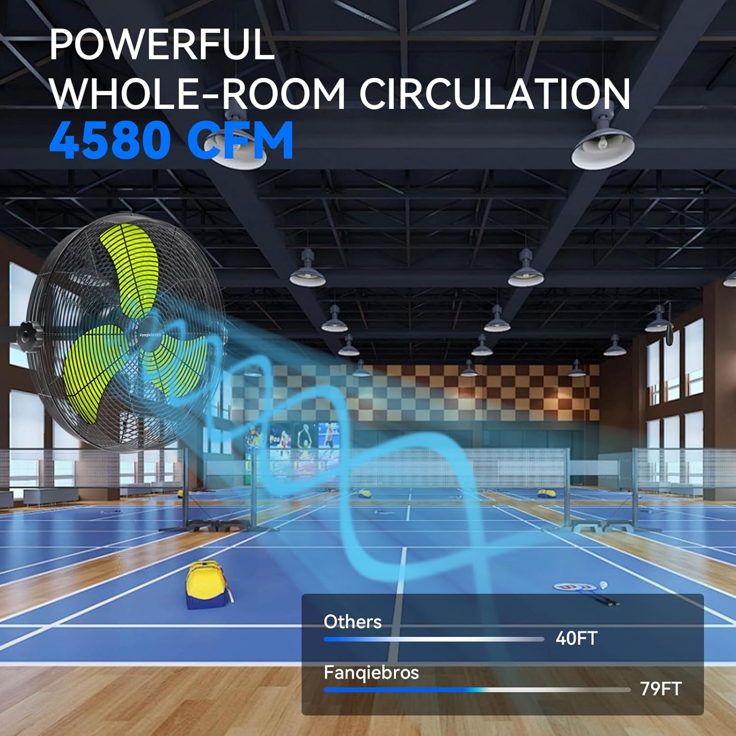 - ššØš°-ššØš¢š¬š ššš¬š¢š š§ - The heavy-duty wall fan operates at a high speed of 4580 CFM with a noise level of only 60dB, which is lower than the industry standard, creating a quieter gathering or working environment