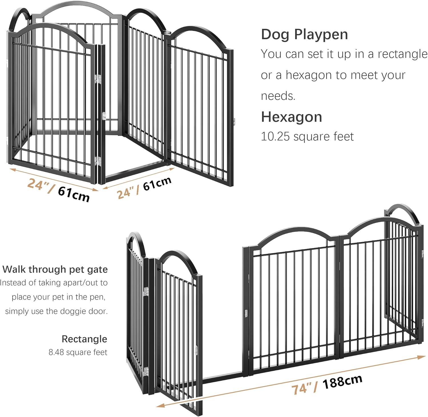 - 【METAL DOG GATES】Our pet fence is made of thick metal pipes, which are more durable than plastic and wooden fences. The metal fence is not afraid of dogs' biting and scratching, so you can be more at ease.