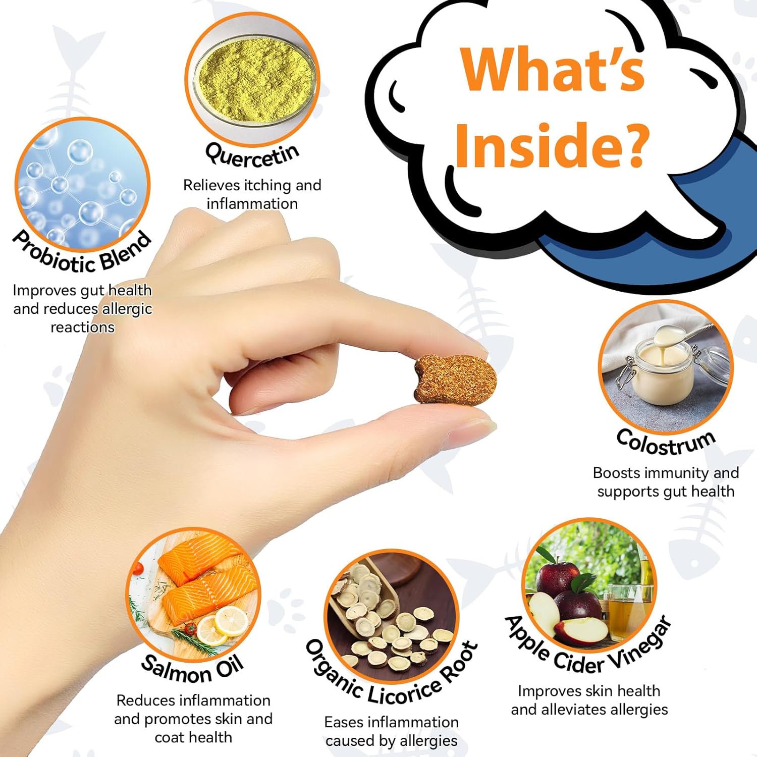 - Long-Term Solution in Every Bottle - Each bottle contains 200 soft chews, providing up to 2 months of allergy relief. Suitable for cats of all sizes and breeds, our chews are a convenient and cost solution for lasting allergy and skin comfort.