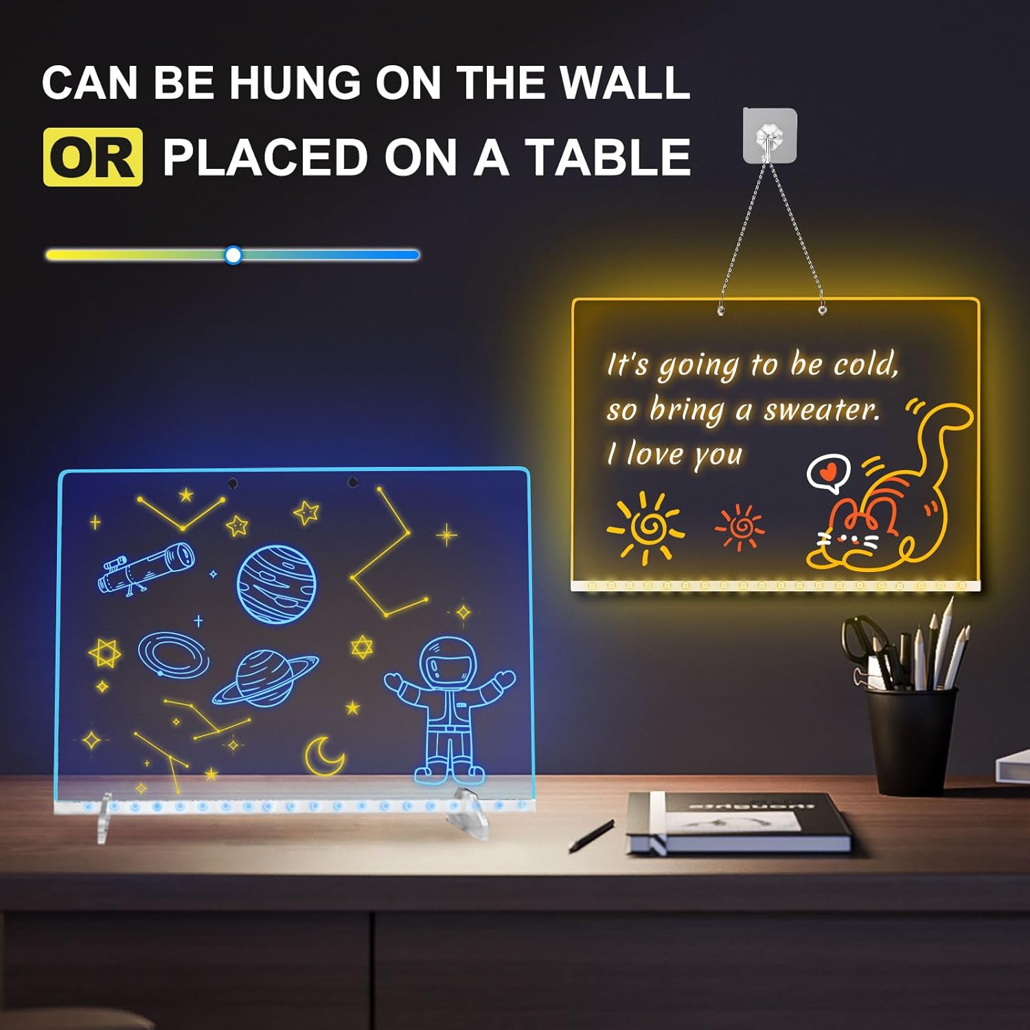 - Wide Range of Uses: The light up drawing board is not just for children. It can function as a led note board in the office for jotting down plans. In a child's bedroom, it serves as a message board, acting as a morning reminder to help the child become more independent. In the kitchen, it can be used to note cleaning tasks or dinner lists.β