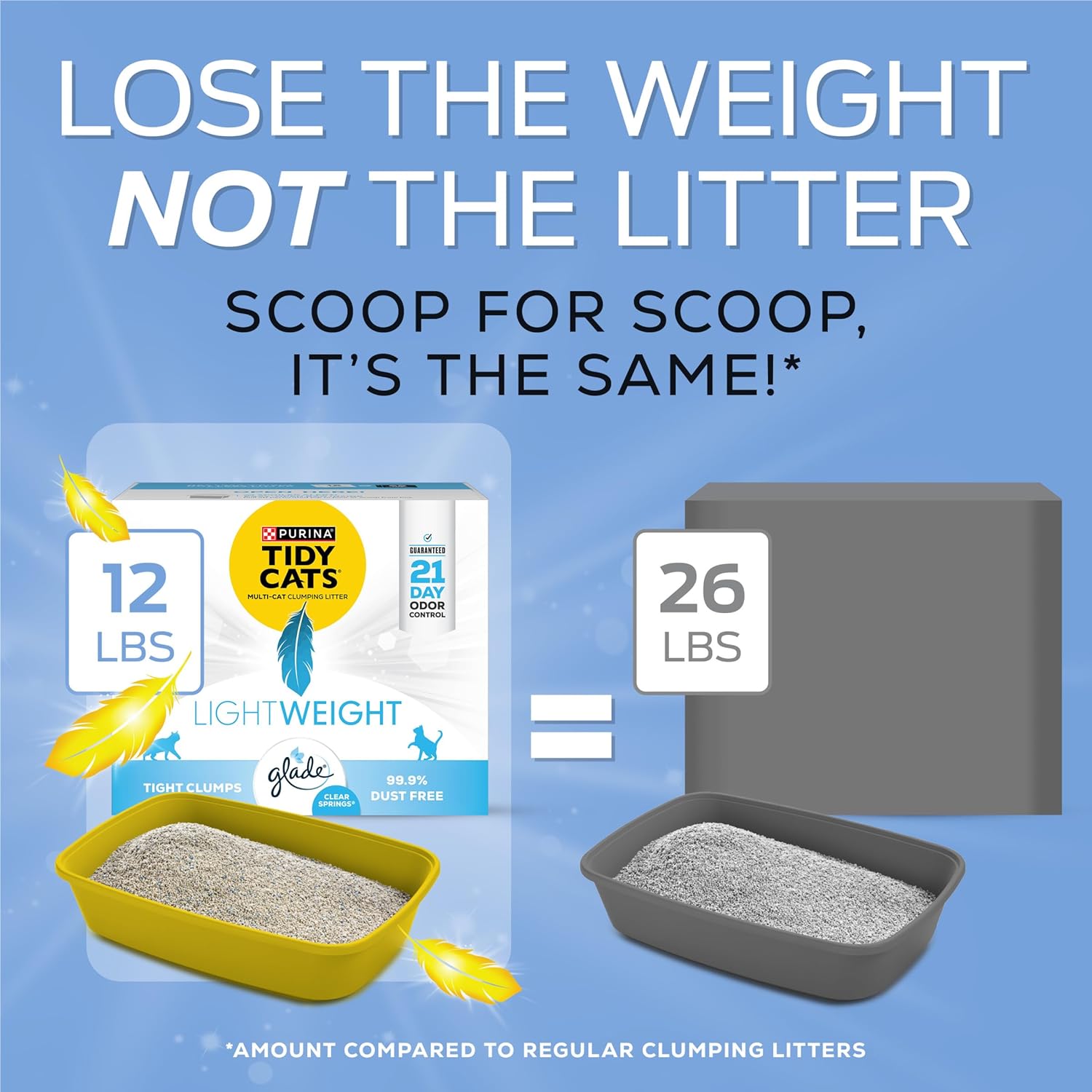 - LIGHTER CAT LITTER: Tidy Cats cat litter lightweight formula is 50 percent lighter than the leading clumping litter--less weight, not less litter.