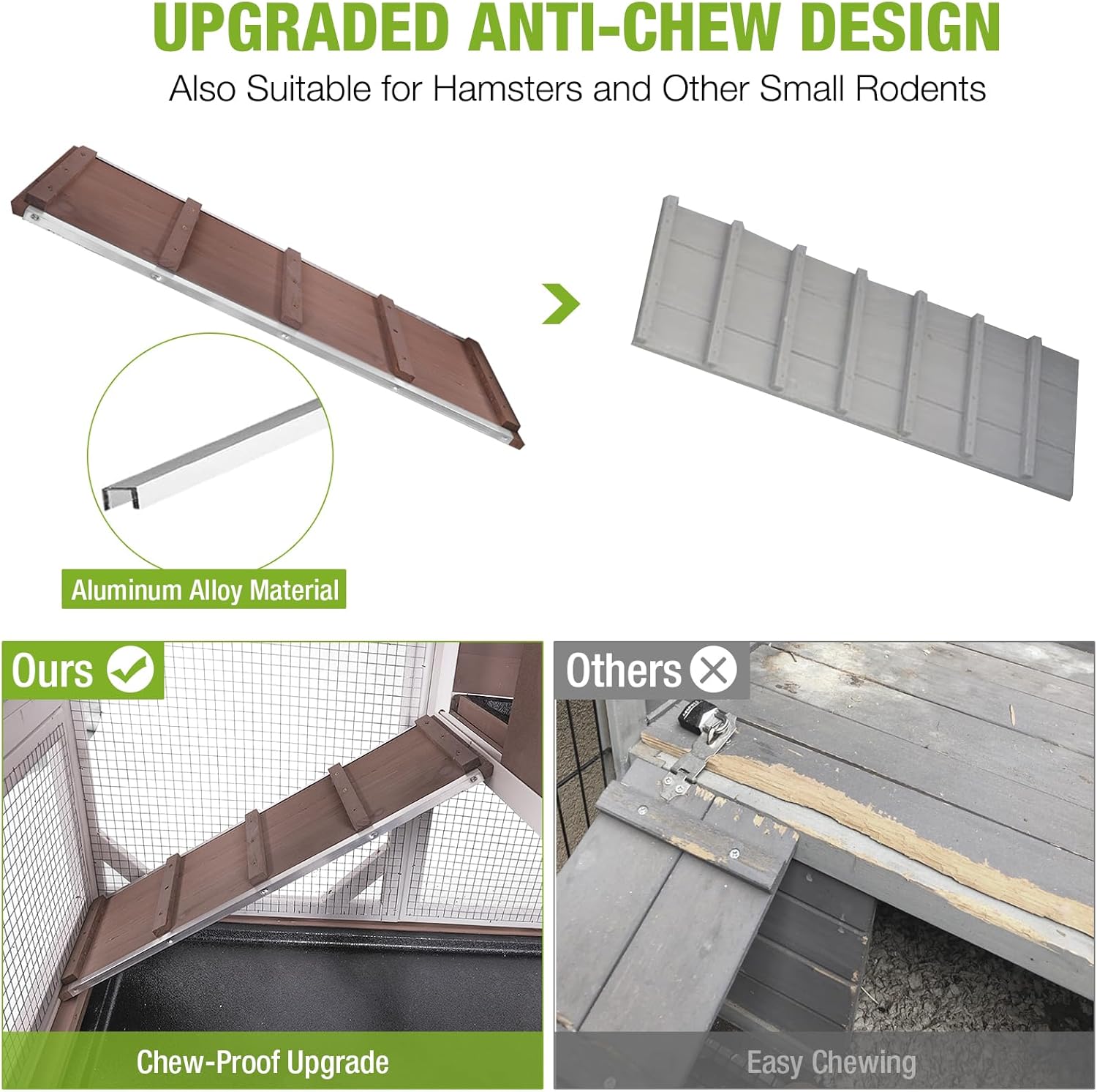 - Sturdy & Chew-Resistant Build: Constructed with solid wood and reinforced aluminum alloy framing, this hutch withstands chewing, weather damage, and wear for long-lasting protection. Ideal for active rabbits, guinea pigs, and small pets.