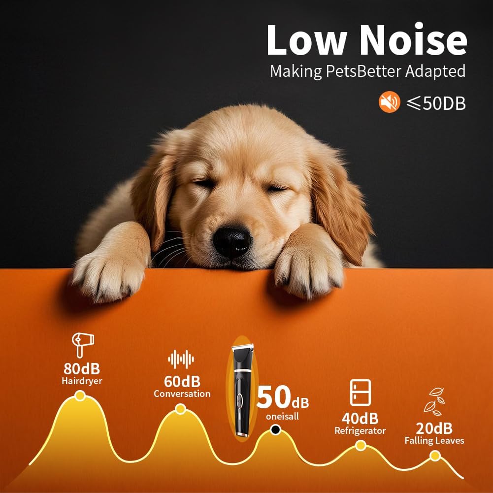 - 【Safe & Low Noise】Many pets are often stressed by the noise and vibration of dog hair clippers, Our dog clippers for grooming works at about 50 dB,so your pet feels more comfortable and help pets polish their claws faster and easier while grooming. Quite easy to use even for Green hand!