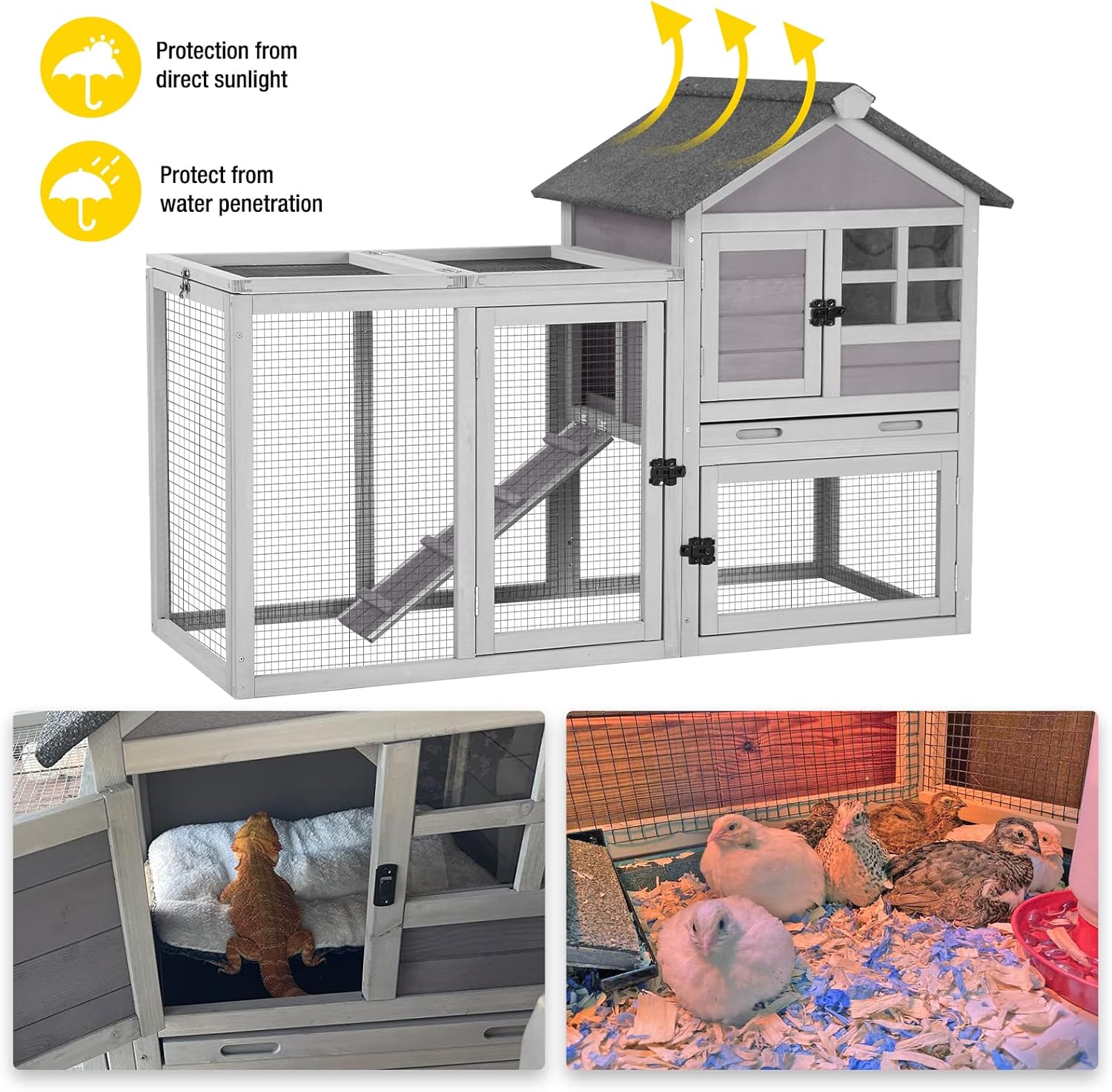 Aivituvin Rabbit Hutch Indoor Bunny Cage Outdoor with Run Chicken Coop Guinea Pig House with Waterproof Asphalt Roof,No Leakage Pull Out Tray