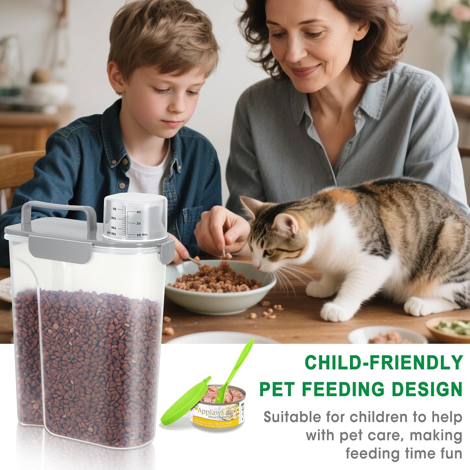- Reliable Cat Food Container: The cat food storage container is made of BPA-Free material and durable construction, providing a healthy and convenient storage solution for your pet food
