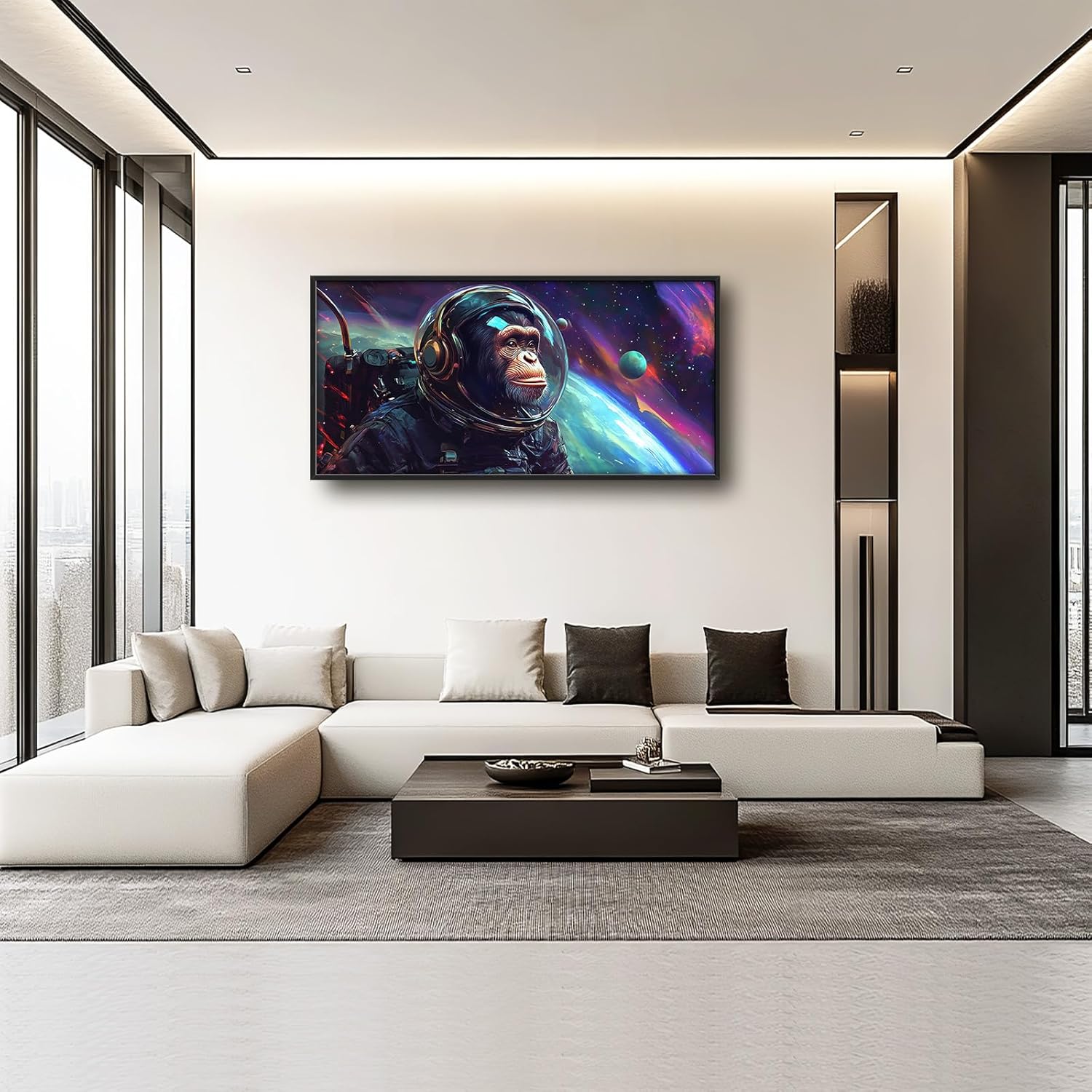 Framed Large Monkey Astronaut Wall Art, Oversized Chimpanzee Spacemen Wall Decor for Living Room, Outer Space Canvas Painting Pictures Modern Artwork for Living Room Bedroom Office 60"x30"