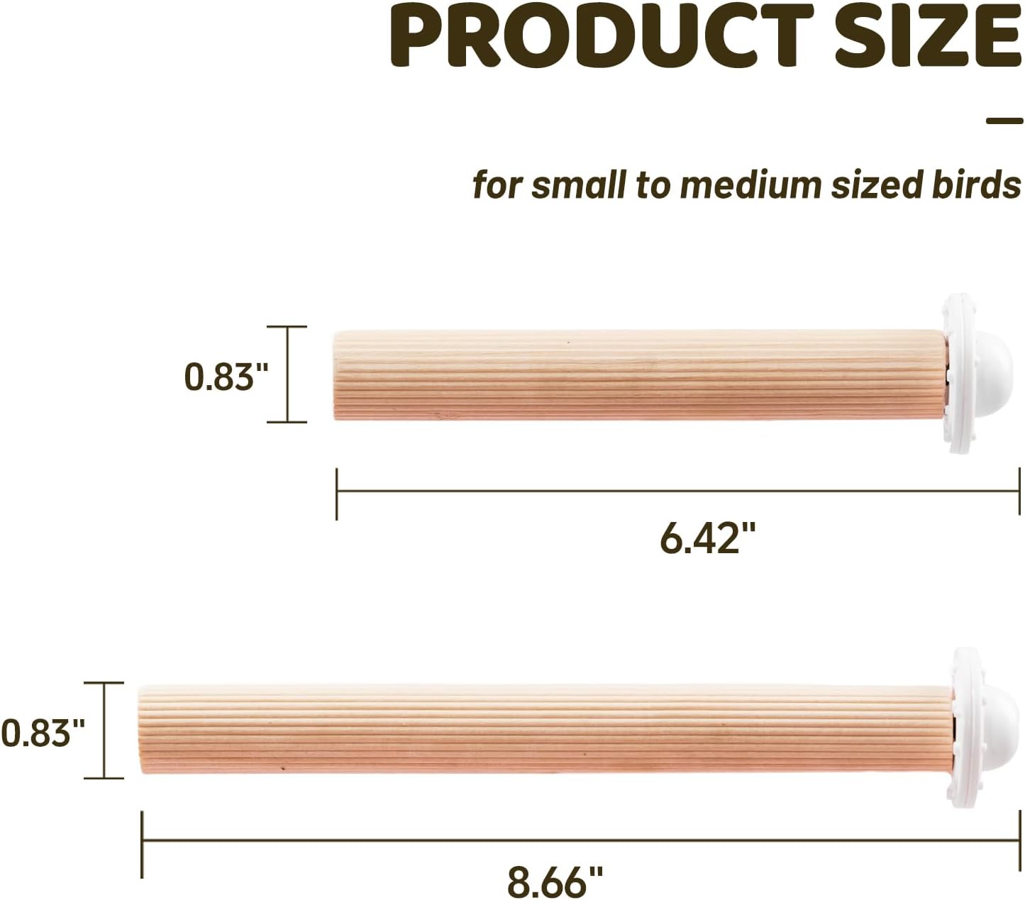- 【Enhance Cage Spatial Layout】This 6-piece aspen wood perch set (3 x 6.42" + 3 x 8.66" perches, all 0.83" diameter) lets you create varied levels and positions within the cage. Strategically placed perches add dimension, increase usable space, and encourage exploration.