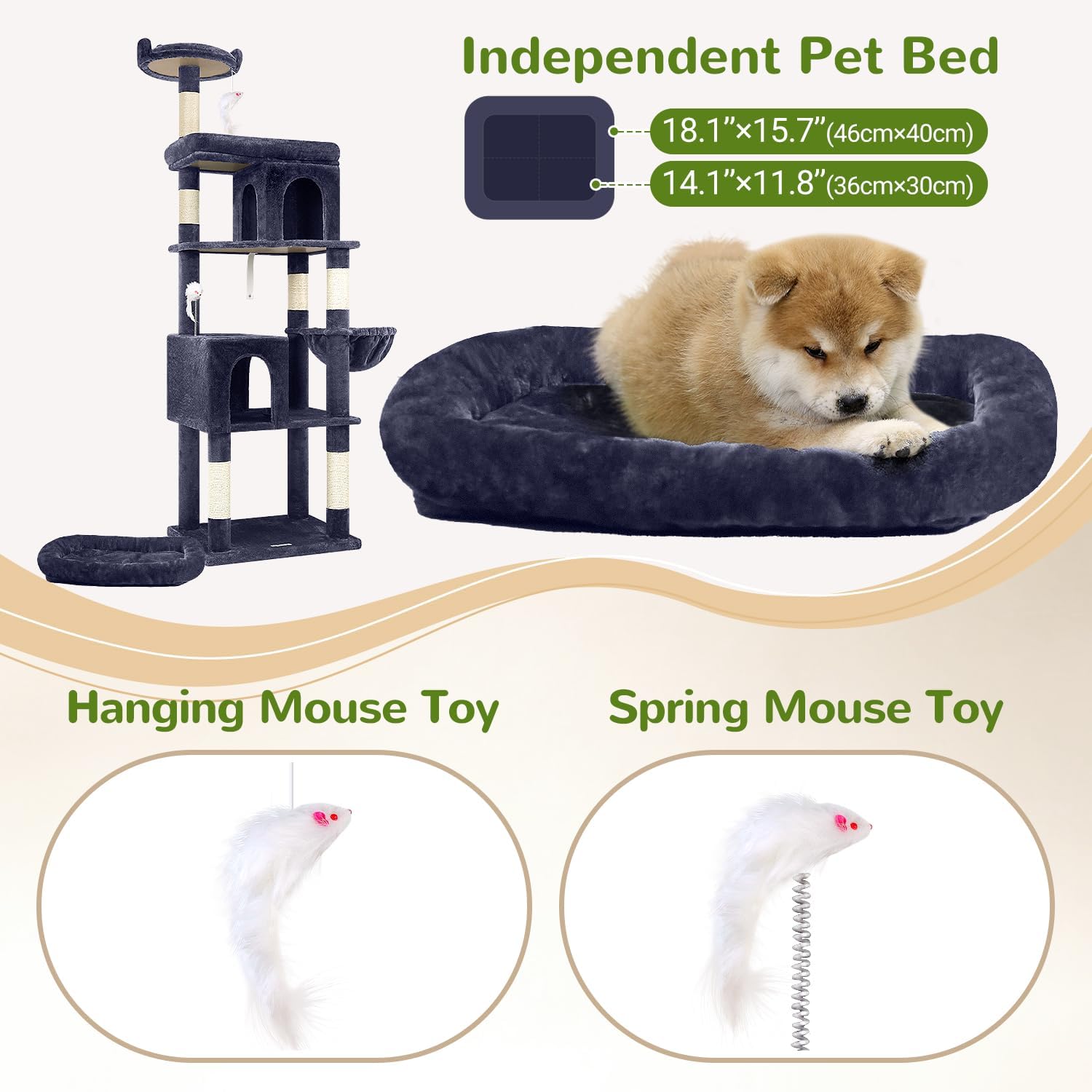 - BONUS INDEPENDENT PET BED- Featuring a separate pet bed(17.7"x 13.4") that is not only suitable for cats but can also be used independently. it can be placed under the cat tower or in your cat's favorite spot. It is also suitable for multi-pet households, allowing other pets to enjoy its benefits