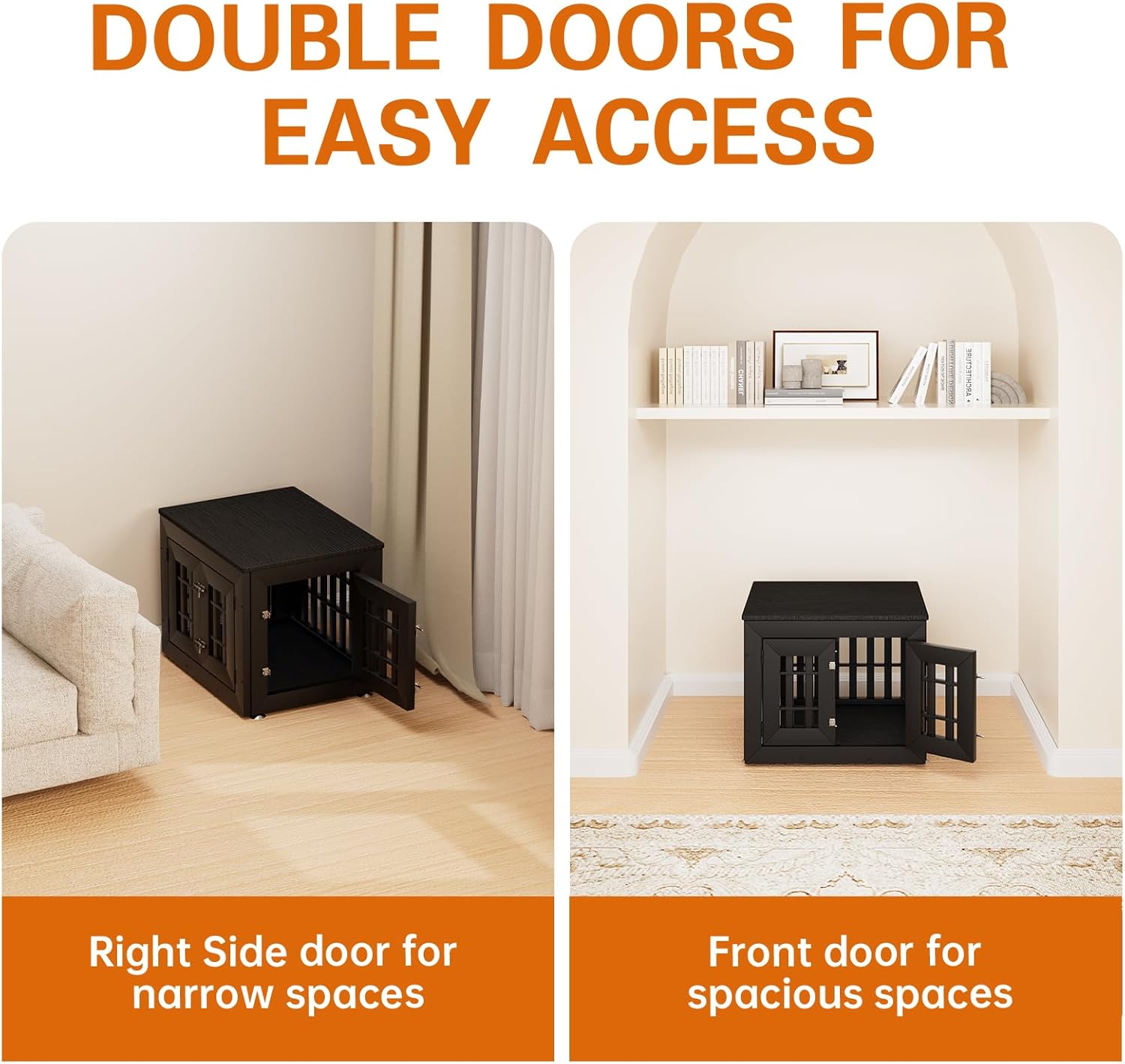 - 【Double Doors Design】The dog kennel furniture has a front door and a side door, your pet will go in and out easily with double doors. The double-doors design can adapt to more different space environments. You can decide whether to open the front door or the side door according to your needs