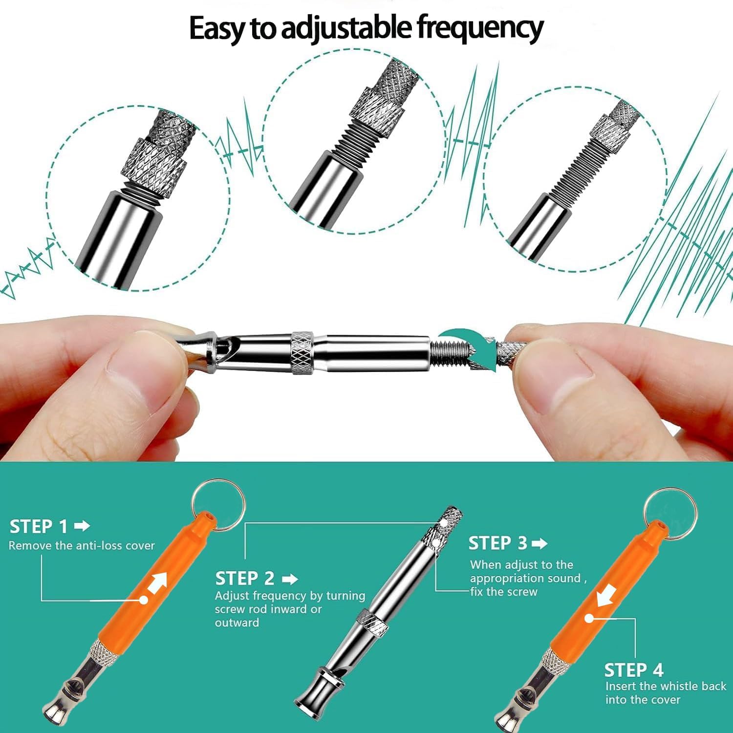 - Adjustable Frequency:Our dog training whistle has a nut and screw that can be turned to adjust the frequency.Pay attention to your dog's response to each frequency,without damaging their hearing.