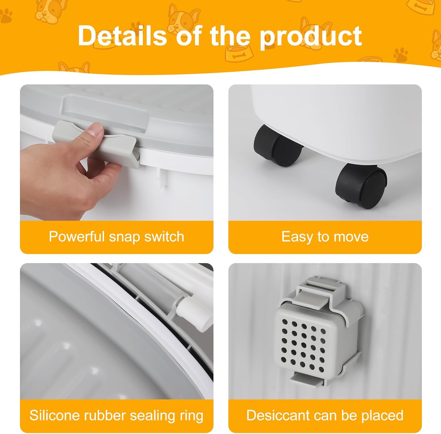 - SUPERIOR SEALING: NXIZOLI airtight dog food storage container uses silicone ring sealing to keep pet food fresh.The slot can store desiccant, garlic, and aniseed, effectively keeping moisture away