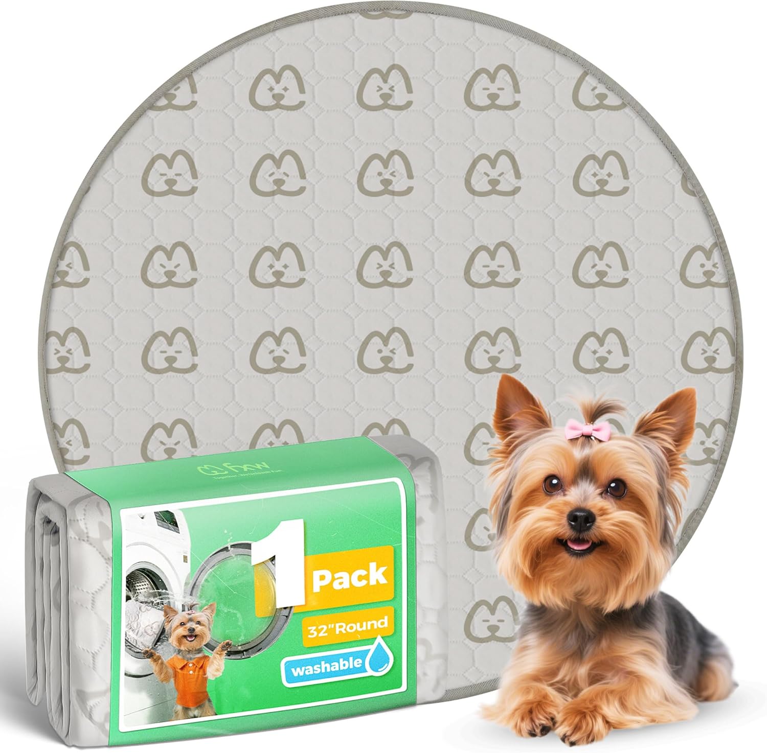 FXW Washable Pee Pads for Dogs, Puppy Pads with Super Absorbent, Specifically Designed for Whelping Box, 32" Round, Khaki, 1 Pack