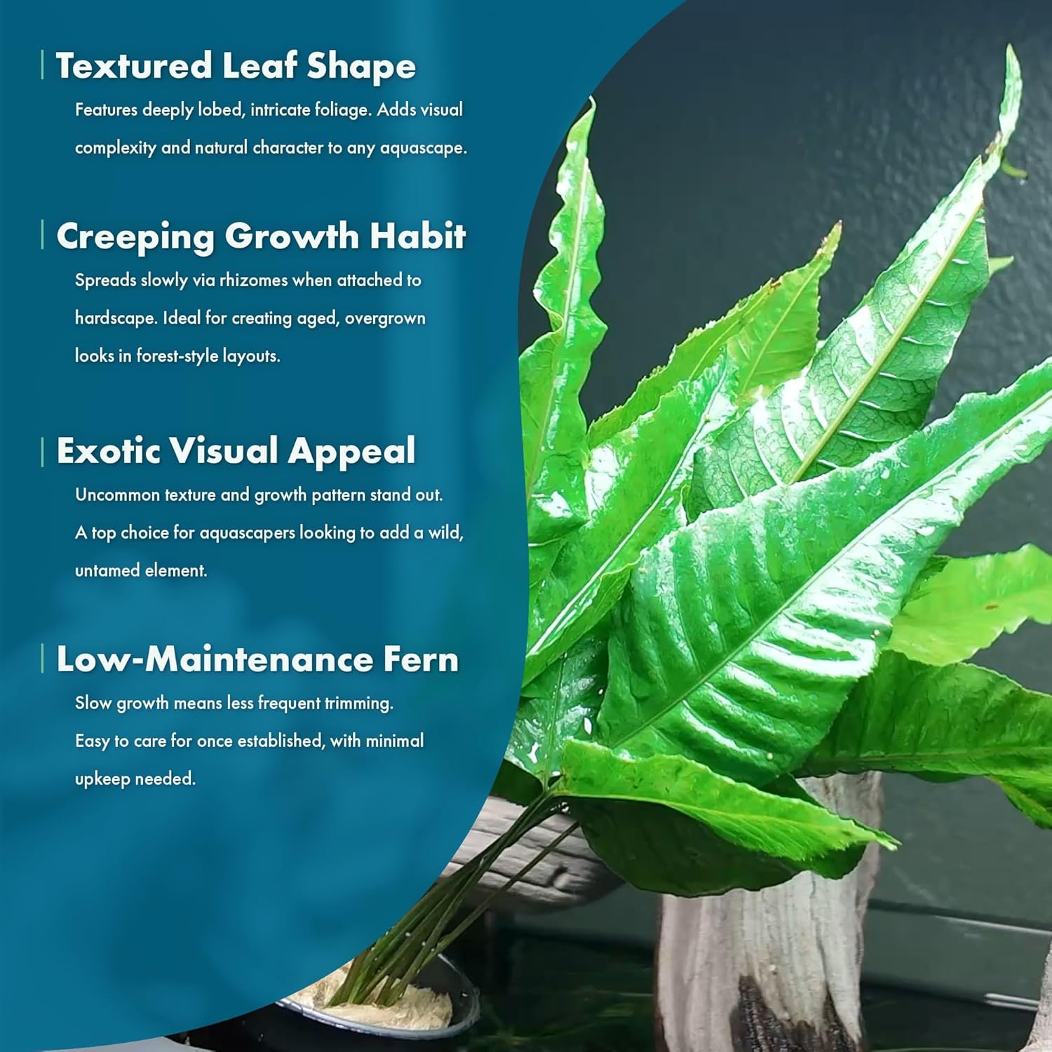 SubstrateSource Live Plants - El Niño Fern (Bolbitis heteroclita) - Midground to Background Epiphytic Rhizome for Low to Medium Light Aquascapes - Dark Green, Slow-Growing Accent - Pot