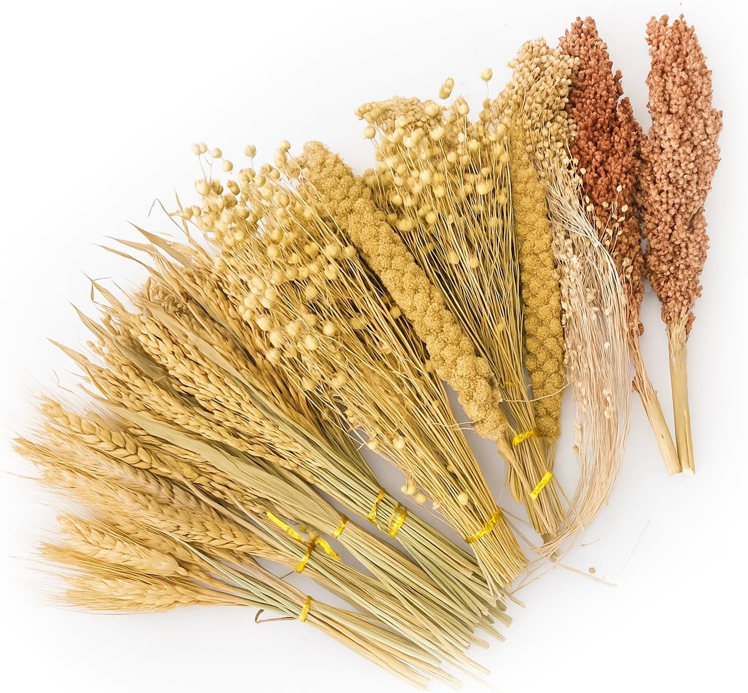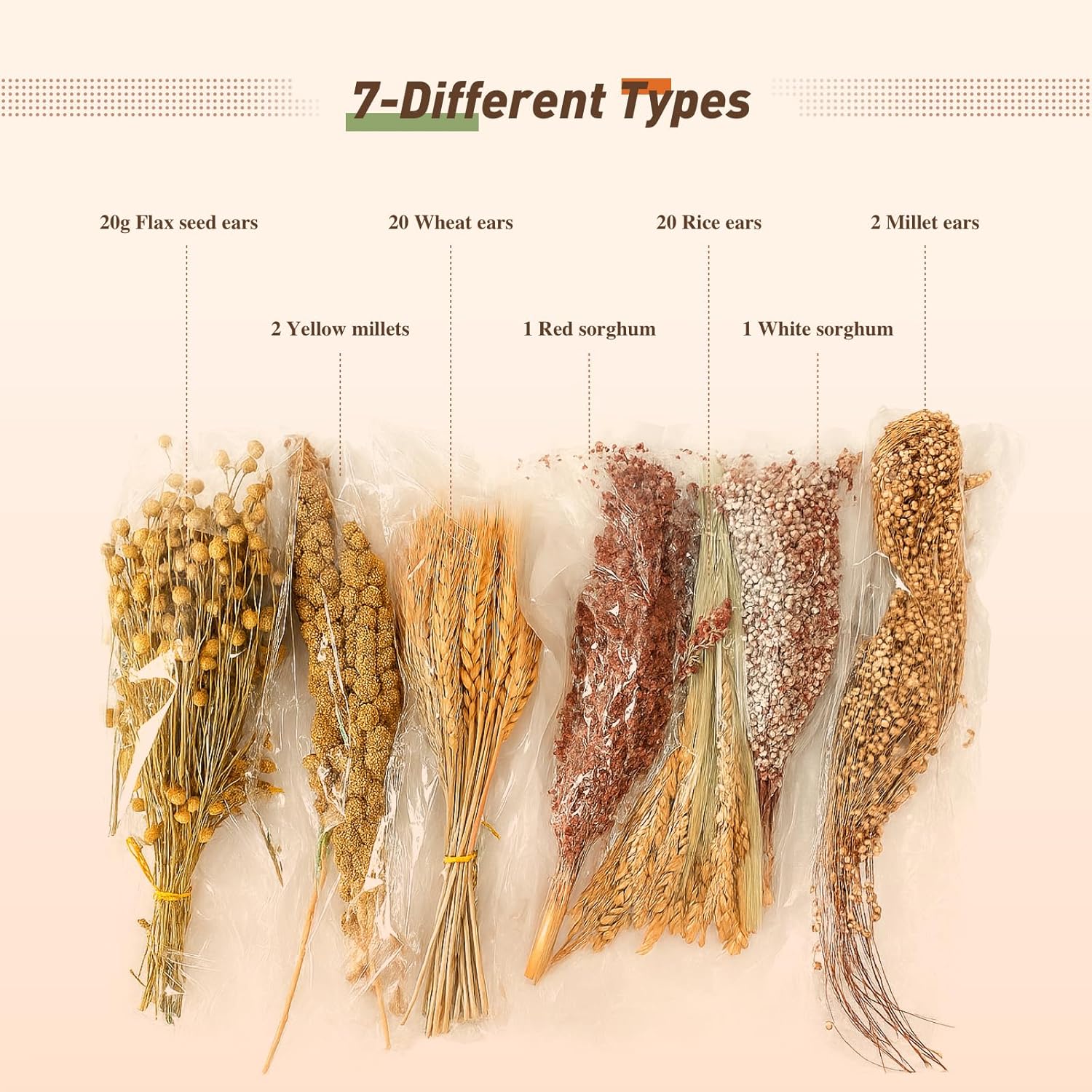 - Abundant Variety & Great Value: Enjoy large quantities at an affordable price. Features rich mixes: the 5-type blend includes rice ears, wheat ears, flax seed ears, yellow millets, and millet ears; the 7-type blend adds red and white sorghum for endless enrichment.