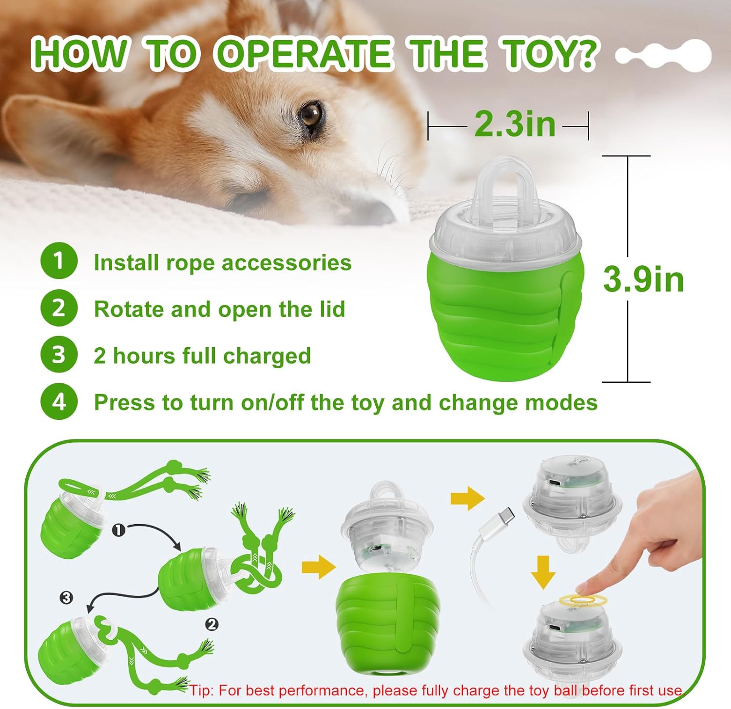 - [2025 Newly Upgraded] - This interactive dog ball provides a captivating play experience. It rolls unpredictably with an attached rope, mimicking the movements of prey. Built-in sound features such as chirping birds or Bluetooth connectivity to play music and other sounds will keep your pet interested. Motion-activated sensors mean it comes to life with a touch or a pat, stimulating dogs natural hunting instincts.