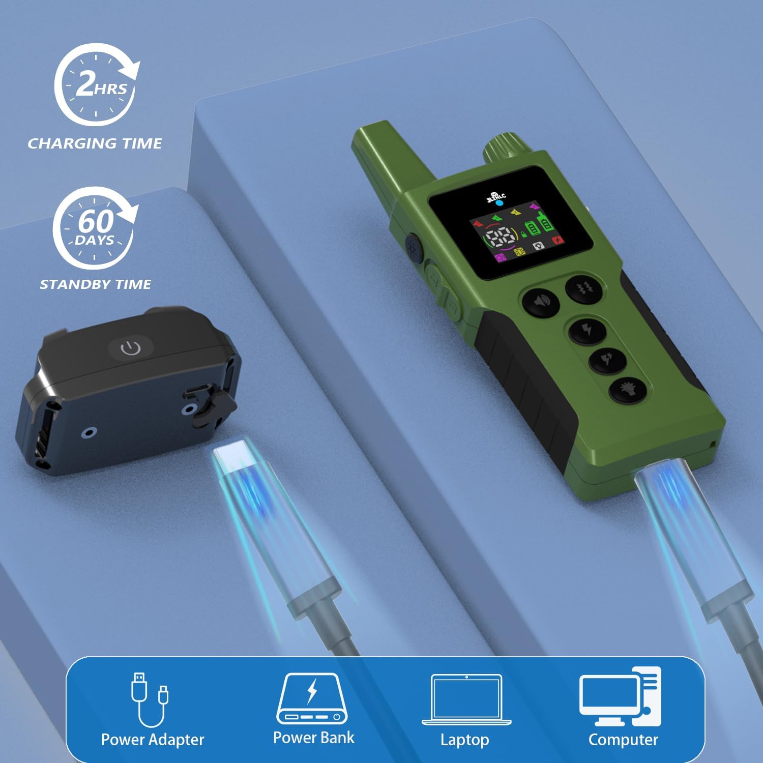 - 【Incredible Battery Life & Quick Charging】 The collar features USB charging with a 2-in-1 fast charging design that takes just 2 hours to fully charge. It offers long-lasting battery life, with up to 35 days of standby time for the collar and 45 days for the remote, reducing the need for frequent recharges