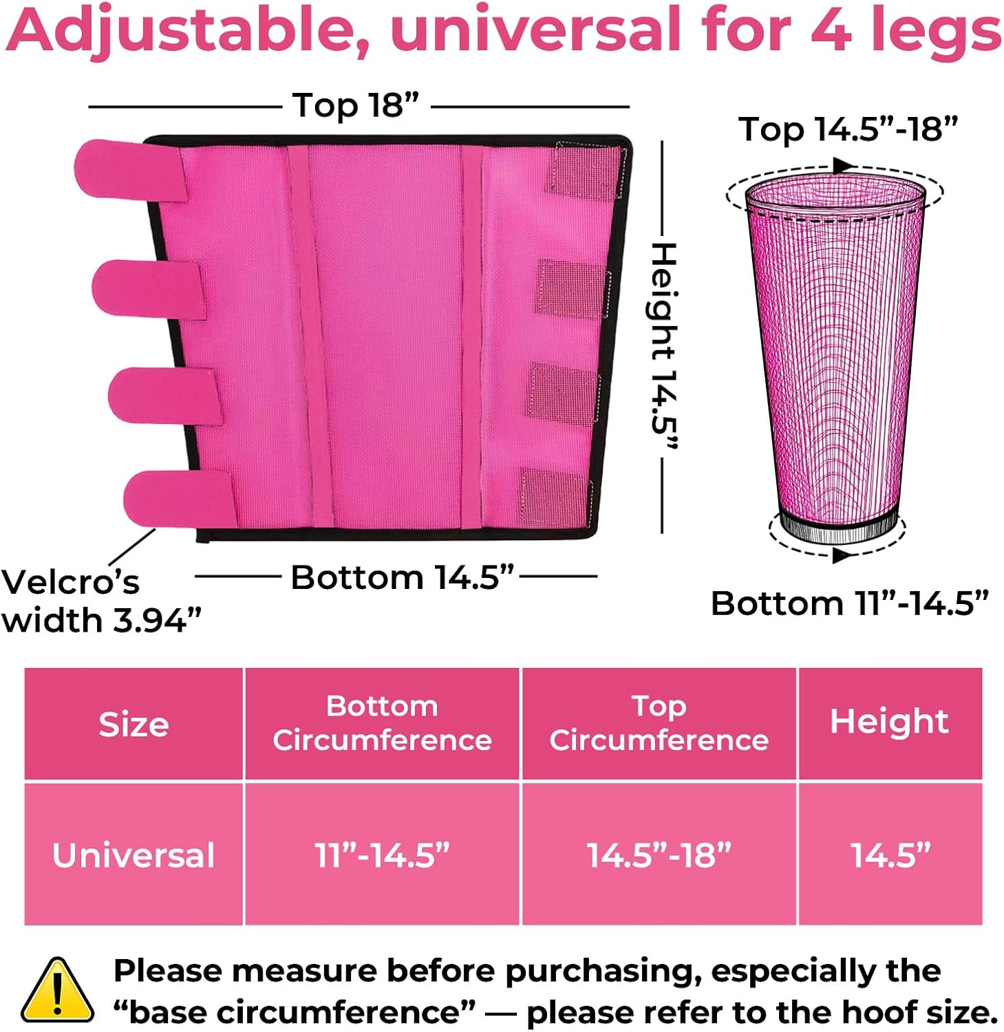 Mesh Horse Fly Boots Set of 4,Adjustable and Universal Loose Fitting & Non-Slip Horse Fly Leggings for Horses,Reduce Stressful Stomping (Pink)