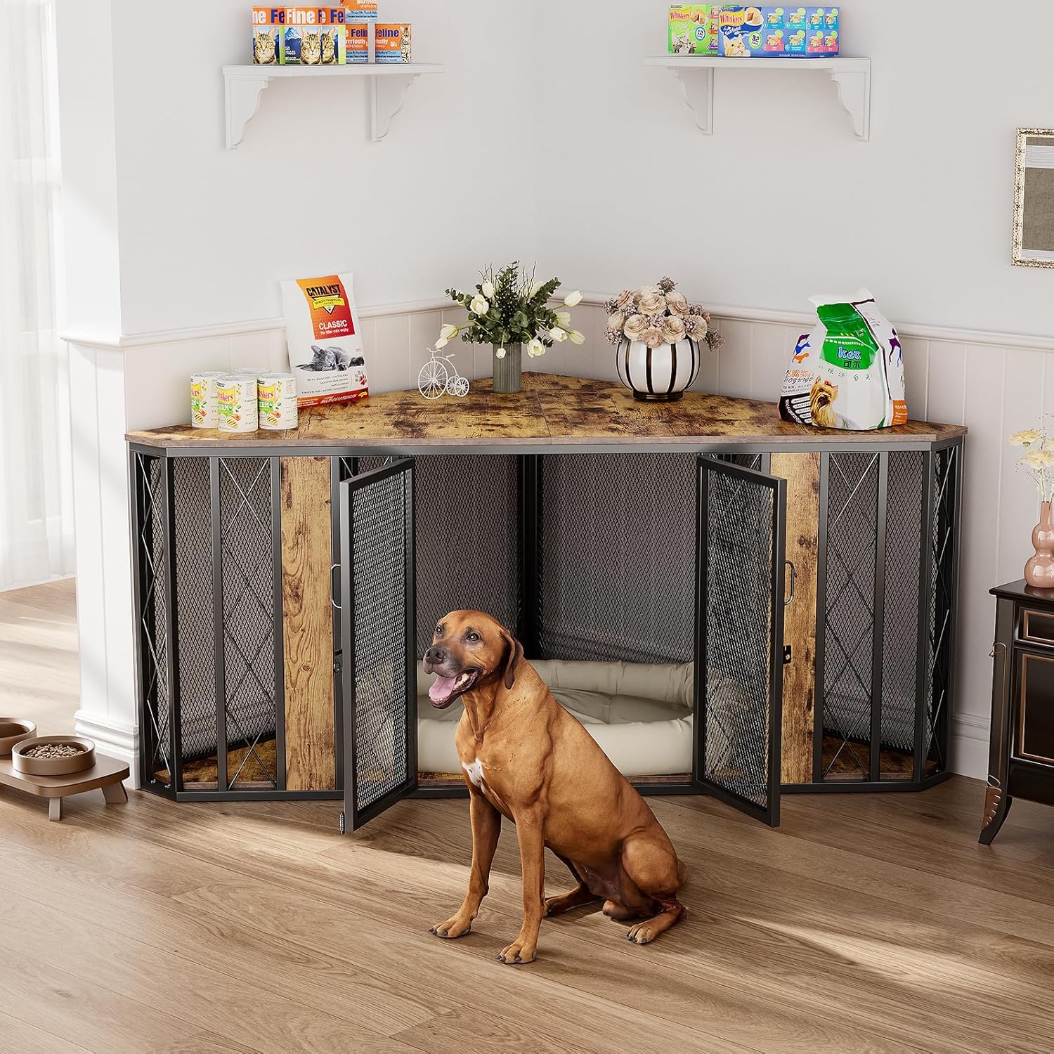 - 【Space-Saving Corner Dog Kennel】Designed to fit snugly into unused corners, this innovative crate maximizes floor space in apartments and small homes. It’s the perfect secure den for your furry friend to rest, relax, and feel safe.