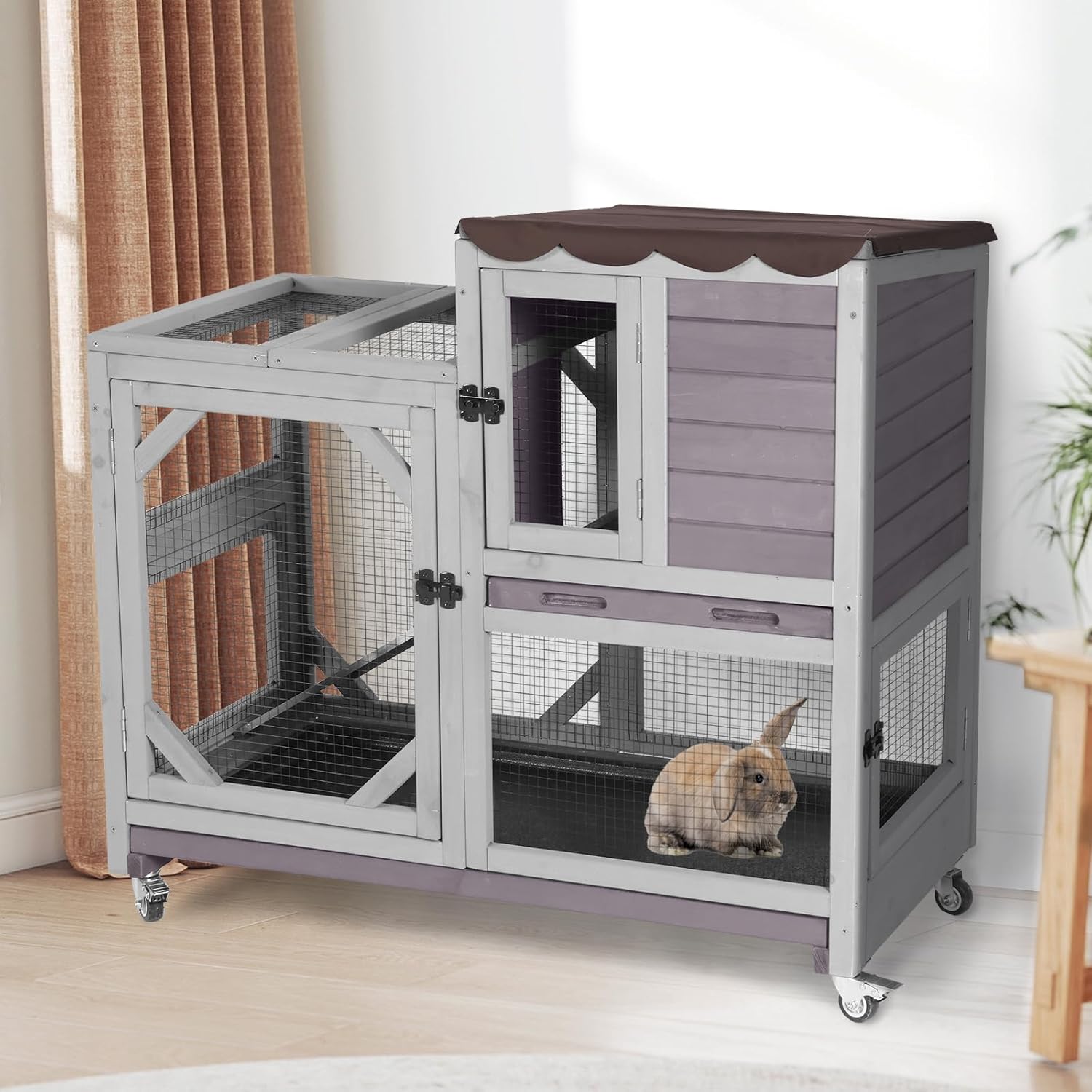 - Multiple Entrances: Designed with convenience in mind, our bunny cage features multiple entrances that allow your bunny to move freely and safely. The second floor features sliding doors that conveniently separate the first and second floors
