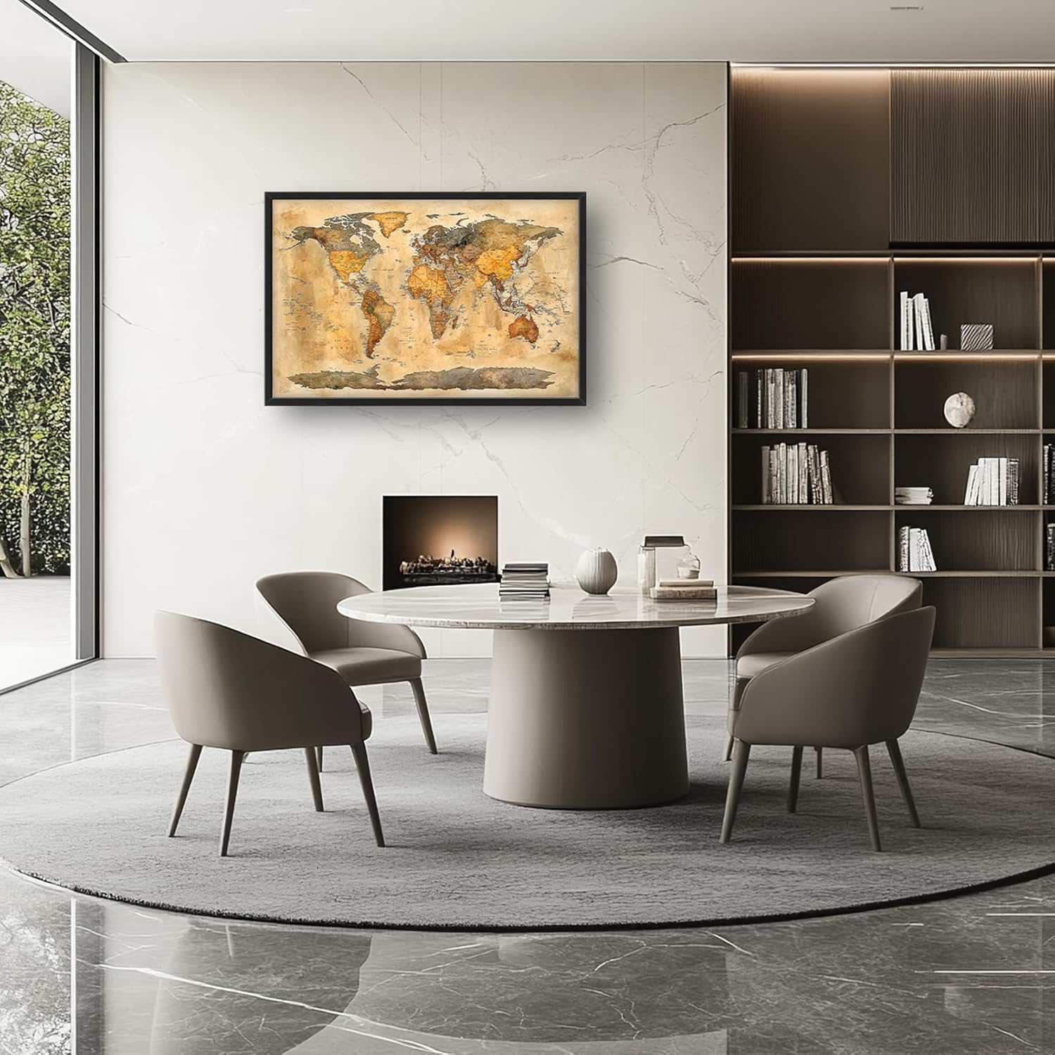 Extra Large World Map Framed Wall Art for Living Room,Oversized Vintage Map of The World Pictures Wall Decor,Canvas Print Painting Modern Artwork Bedroom Office Bathroom 36L" x 24W"