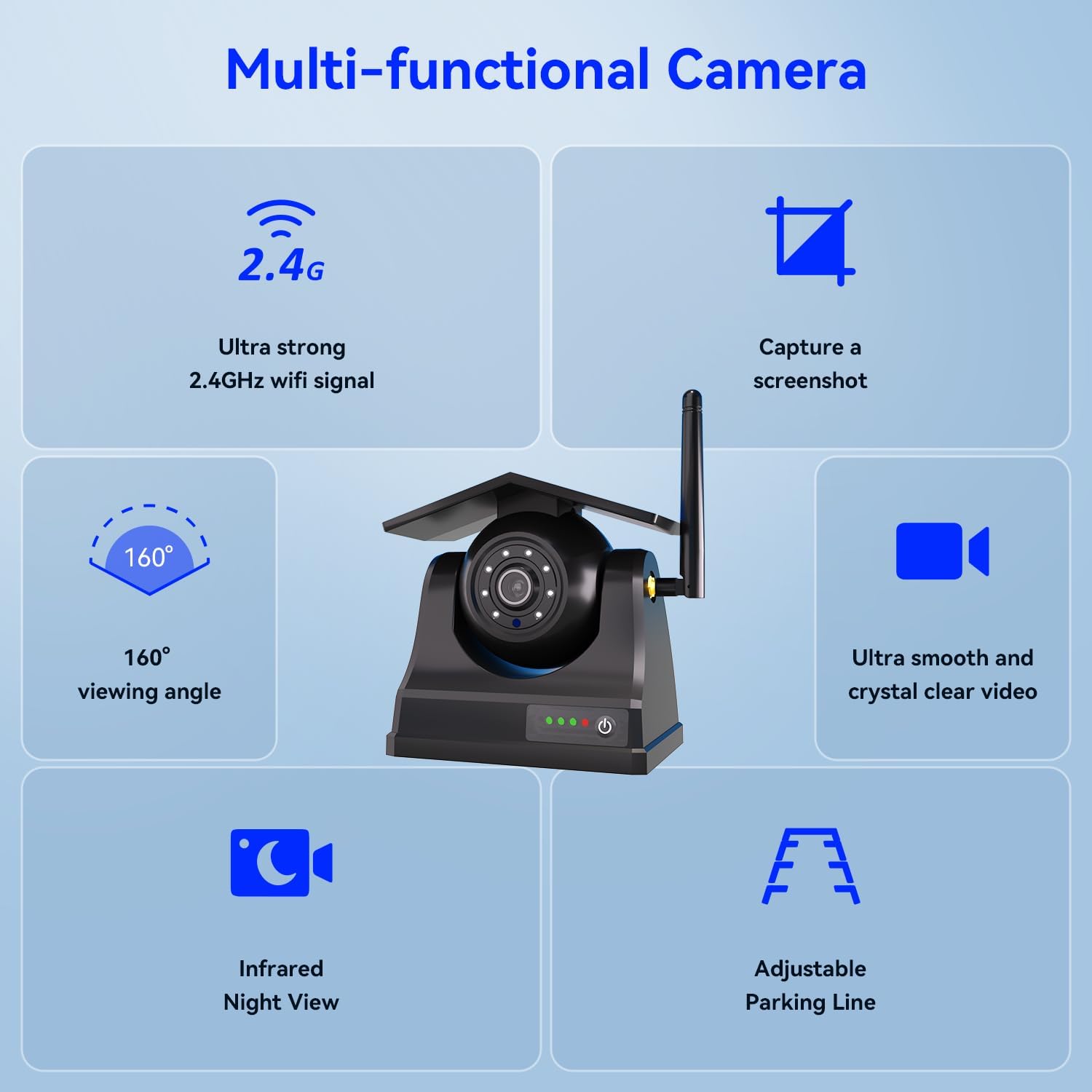 - Stable signal transmission and IP68 Waterproof: By adopting the upgraded wireless module and chip, also having 2.4GHz WiFi transmission speed, the wifi backup camera for trailer transmits signals more stably with no freeze, and over longer distances up to 328ft in open spaces or 33ft in the presence of obstacles. Passed IP68 waterproof test, the camera for trucks can work in all weather conditions.