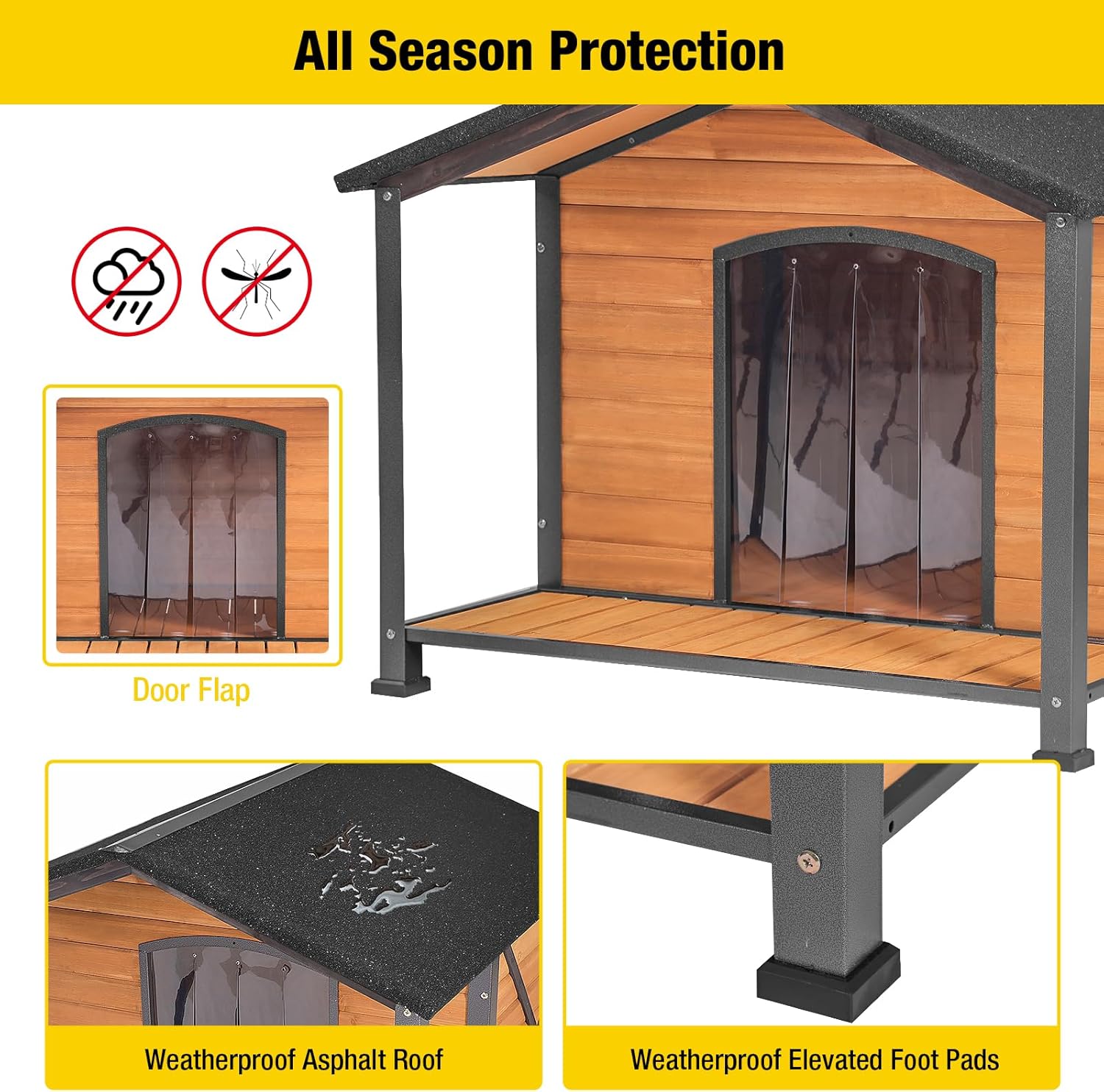 - Sturdy Wood And Metal Structure: Large dog house reinforced with a metal frame and thick solid wood panels for enhanced durability and long-term outdoor use