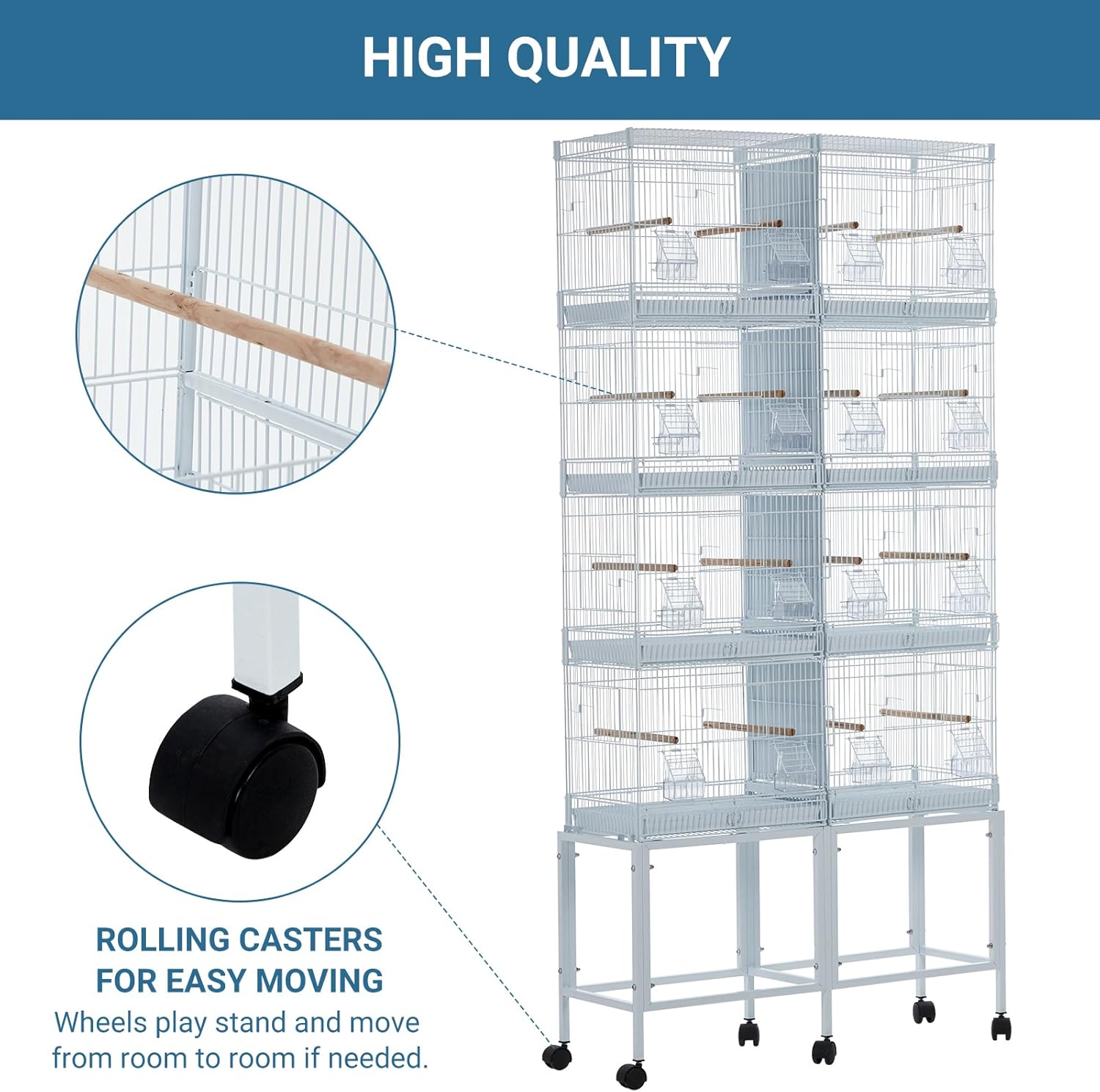 Lot-4 Breeding Bird Cage, Parrot Cage, Stackable Center Divided Breeder,Seperate Removable Tray, Removable Divider, Lockable Caster, for Birds and Finch