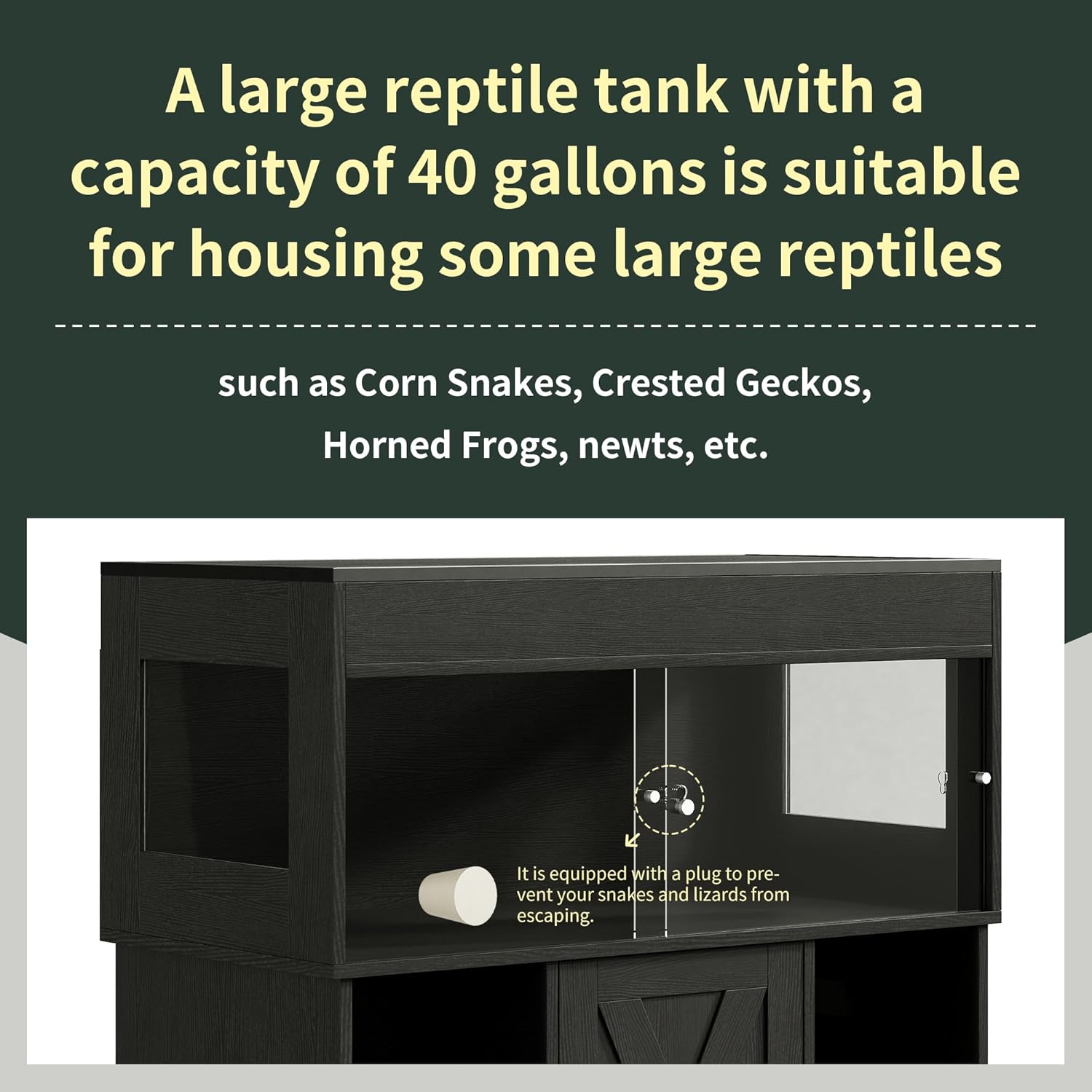 - Great for Small Reptiles - This 40-gallon reptile enclosure is ideal for juvenile bearded dragons, leopard geckos, corn snakes, or other small reptiles. Compact and beginner-friendly, it’s a perfect choice for those with limited space or new to reptile care. TIP: This tank is not suitable for holding water.