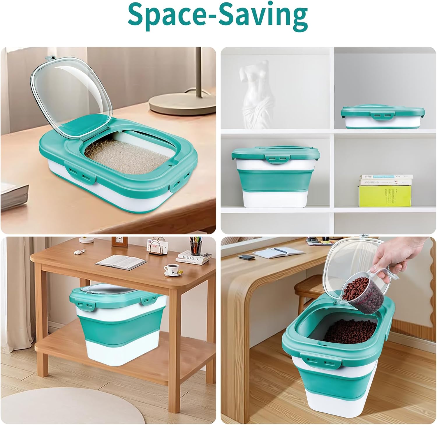 - ✅【Great Capacity & Collapsible Rice Container】This Collapsible Rice Storage Container can be used in two different sizes. Unfolded Capacity: holds about 20lb rice/10lb pet food. Folded Capacity: holds about 6lb rice/3lb pet food. Kindly Notice: The capacity will vary depending on the density of the stored food.