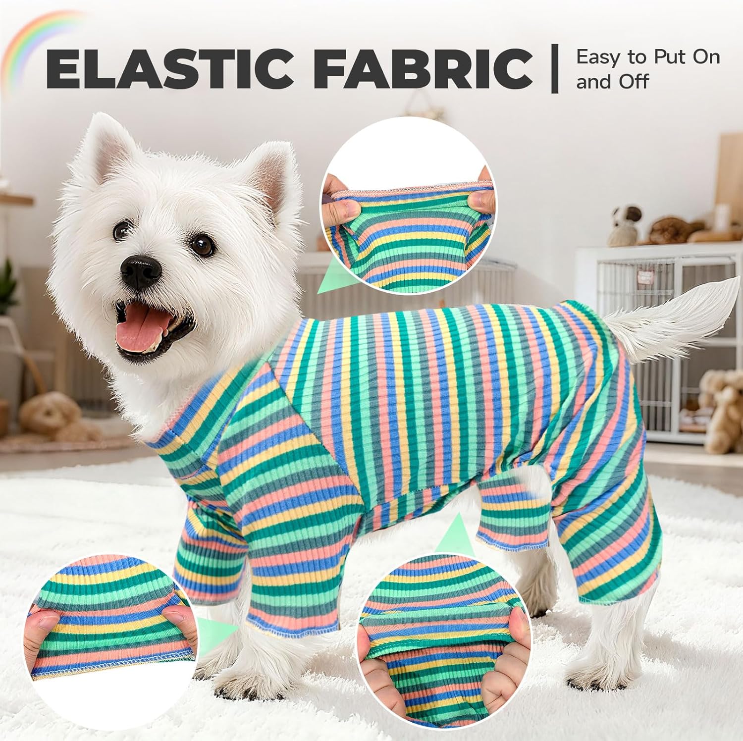 BAEJMJK Striped Dog Pajamas Stretchy Cute Four-Legged Boy Girl Dog Clothes with Sleeves Comfortable Dogs Jumpsuit Colorful Pet Puppy Outfits Apparel for Small Medium Dogs Cats(Green,Medium)