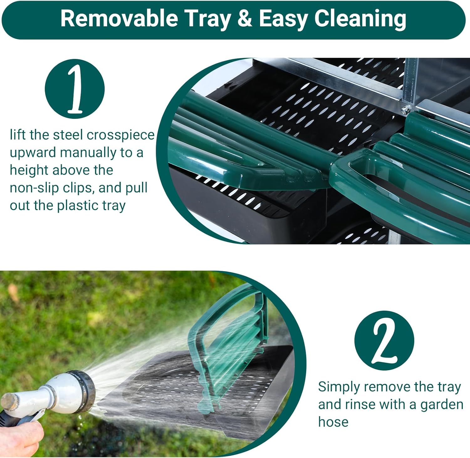- EASY CLEANING: The small holes in the bottom of this egg nesting box prevent moisture and debris from accumulating, and the removable tray makes cleaning easy. Simply rinse with water to keep the nesting box clean and tidy, ensuring the health of the hens.