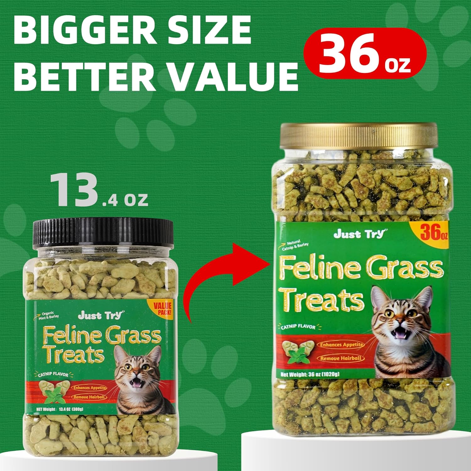 Just Try 36 OZ Cat Treats for Indoor Cats Hairball Control Natural Salmon Healthy Cat Grass Treats Kitten Snacks Training Biscuits Catnip for Cats Dental Care