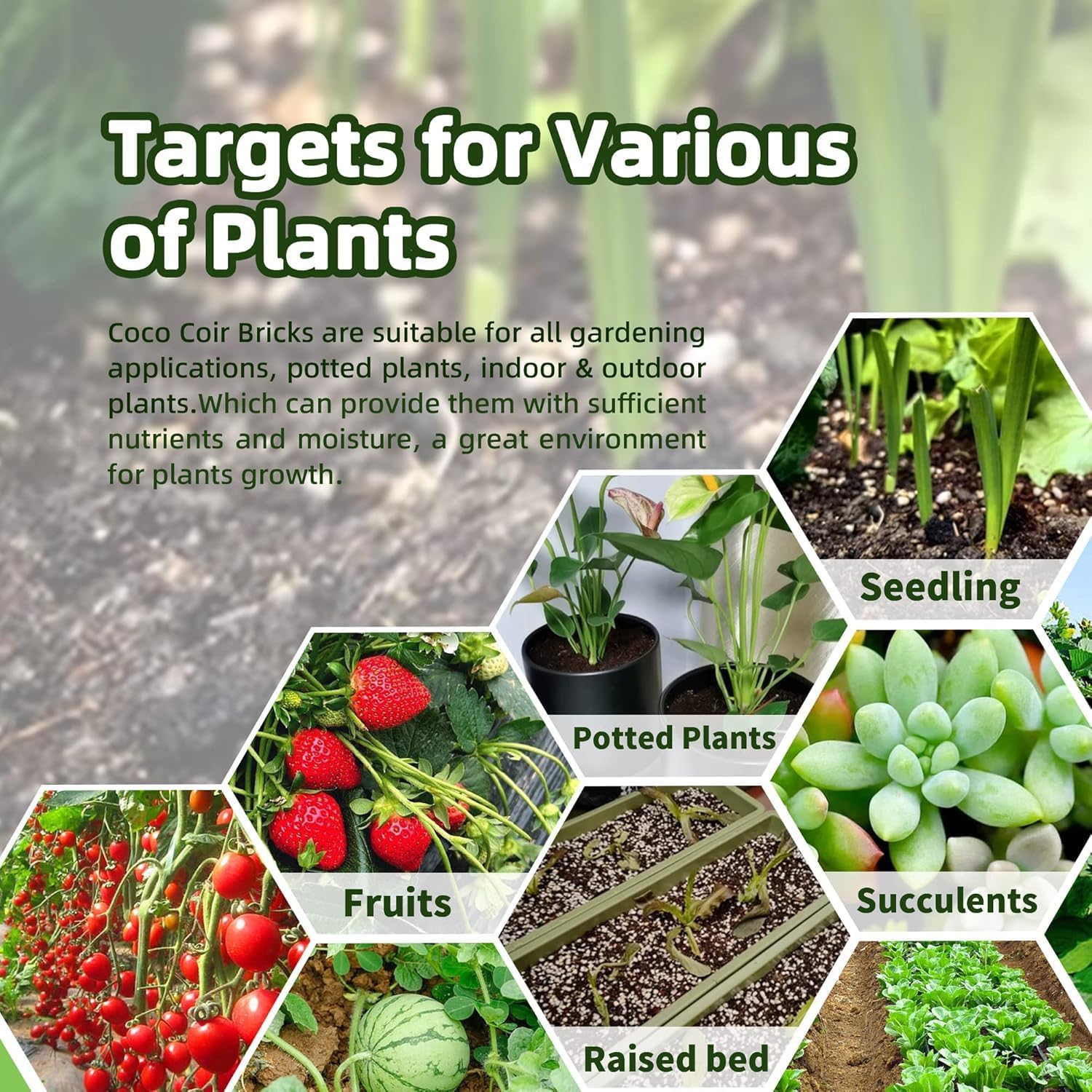 Coco Coir Bricks (16-Pack, Eco-Friendly) -100% Natural Compressed Coco Peat Brick Coconut Fiber Substrate, Plant Soil Enhance Root Growth forVegetable Seed, Herbs, Flowers, House Plants