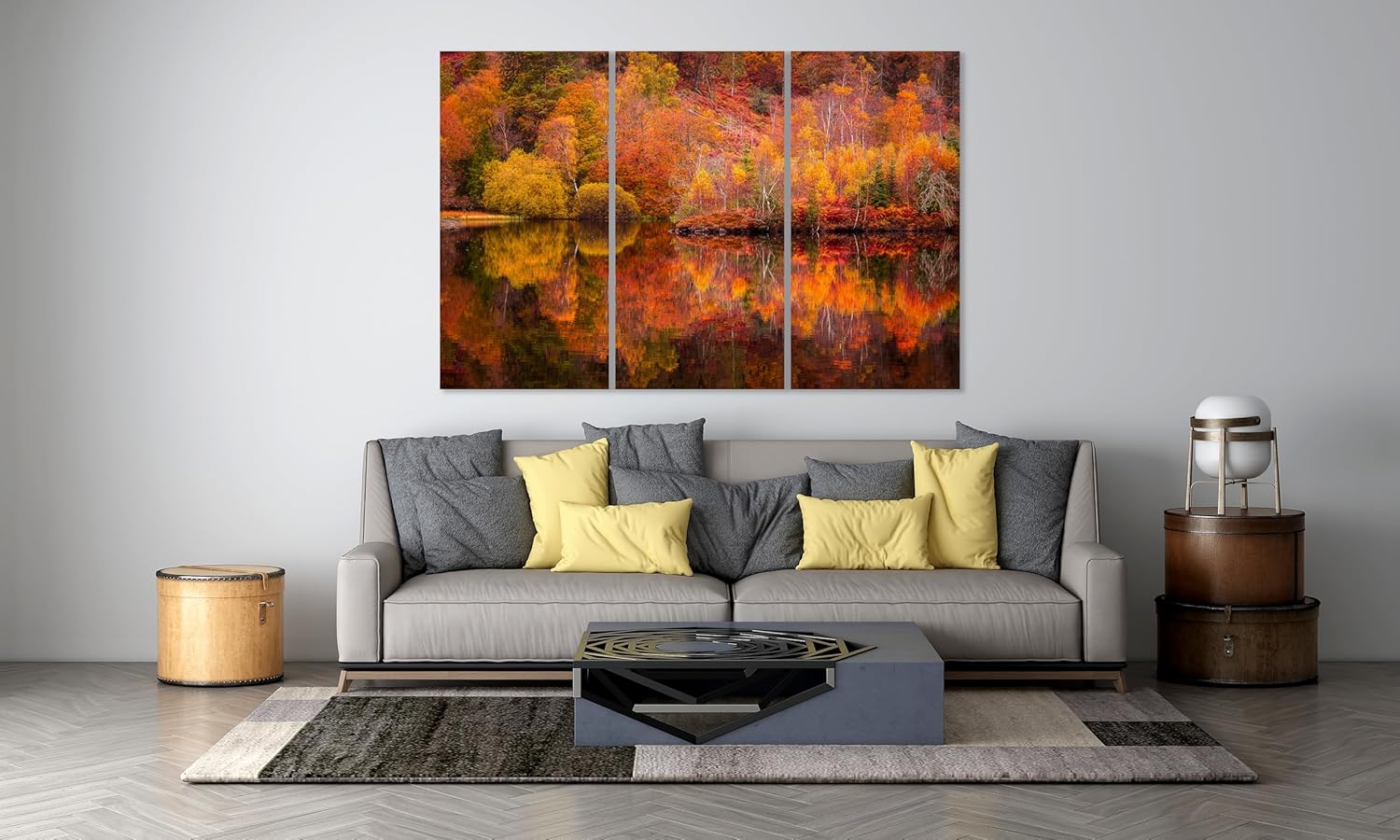 Nature Wall Art Prints - Ocean Forest Mountain Lake Canvas Landscapes - Small to Extra Large Living Room Bedroom Kitchen Bathroom Décor (Autumn Forest with Lake, 55L" x 83W"- 3 Panels)