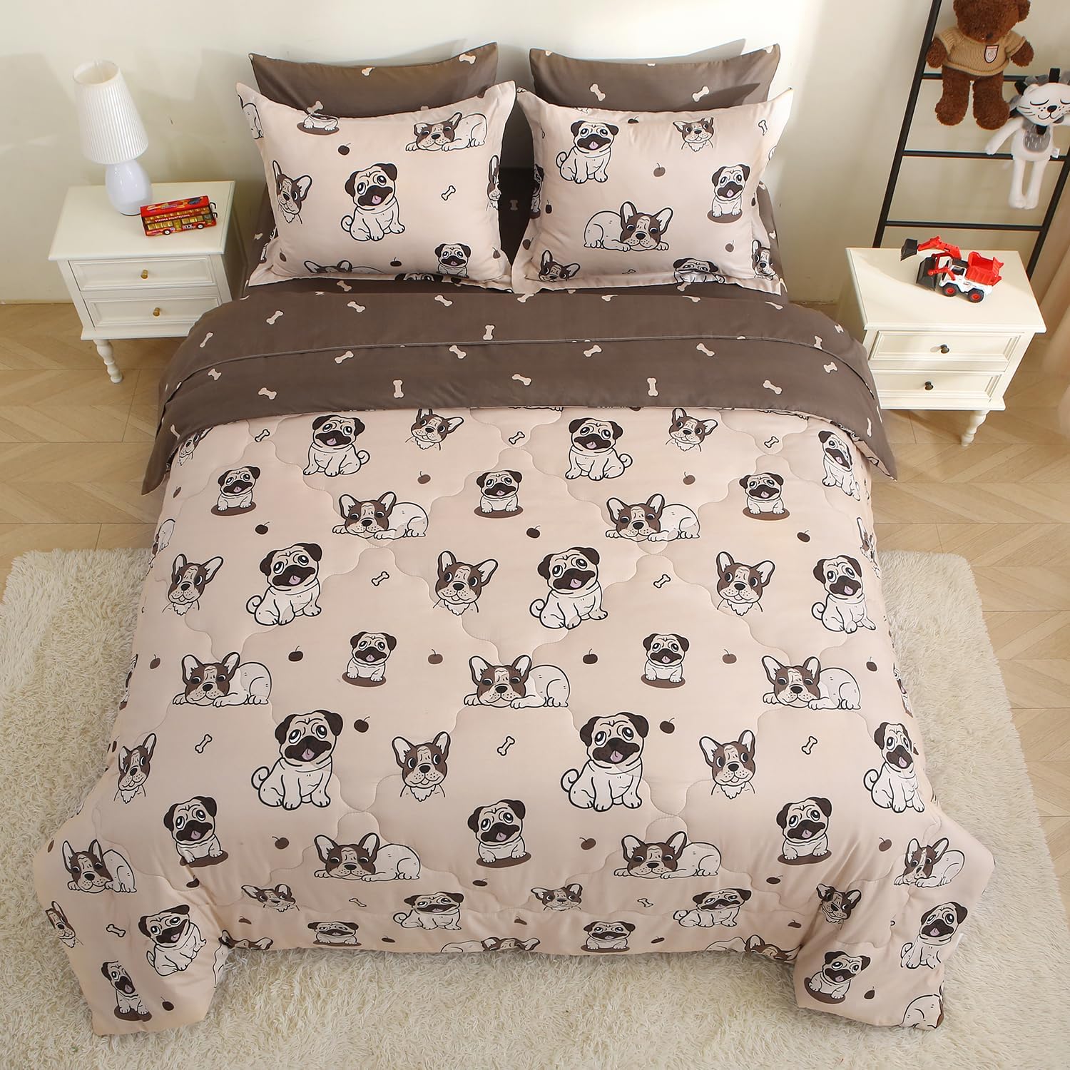 Kids Comforter Set 7 Piece Bedding Cute Dog Cartoon Animal Bed Microfiber Comforter Full Size All Season (1 Comforter, 1 Flat Sheet, 1 Fitted Sheet, 4 Pillowcase)