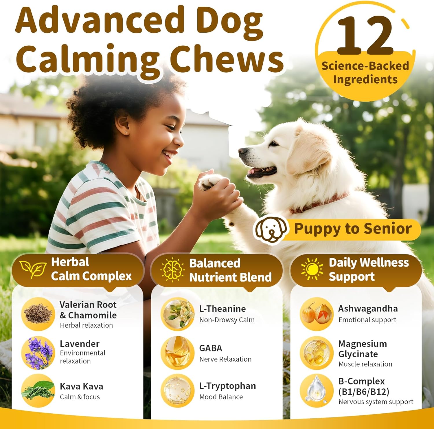 - Puppy & Dog Calming Treats for Anxiety & Stress: Formulated to help with common triggers like separation, travel, barking, fireworks, training, and thunderstorms. Regular daily use of these calming treats supports balanced behavior and emotional stability over time.